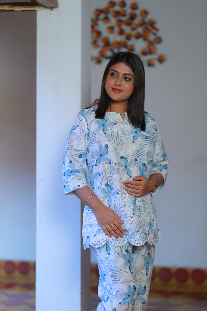 Tropical Breeze Linen schiffli embroidery co-ord set