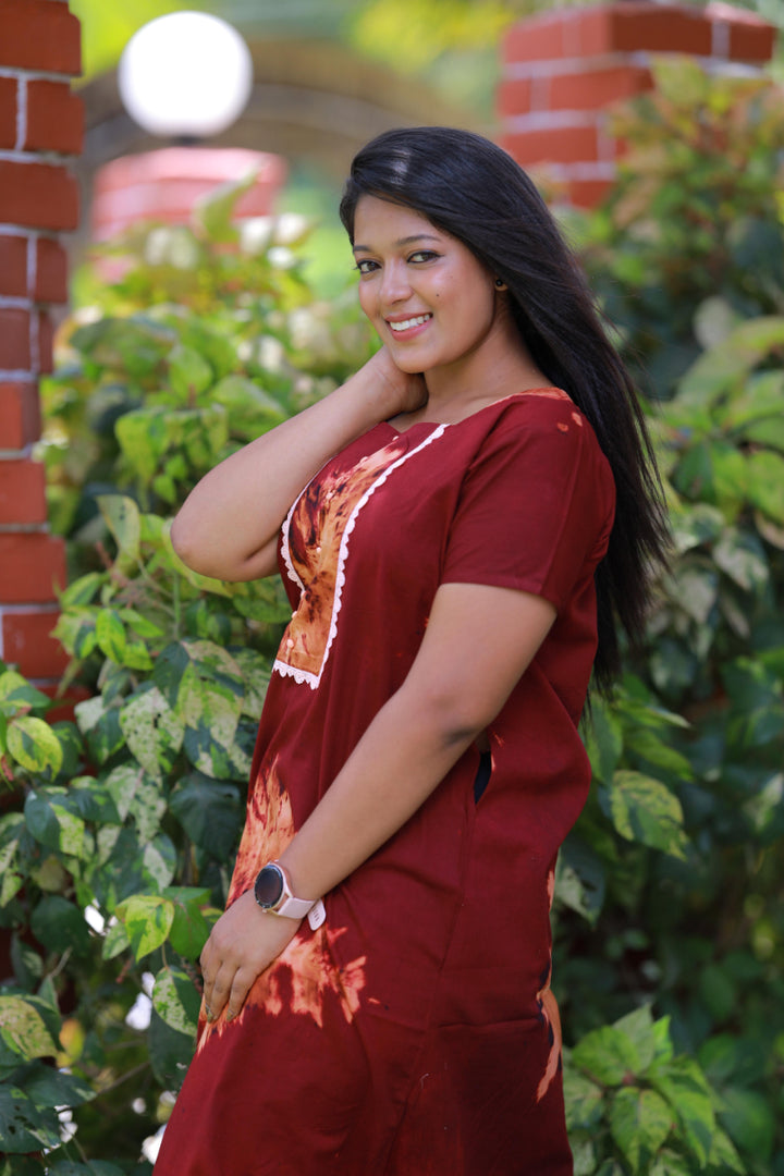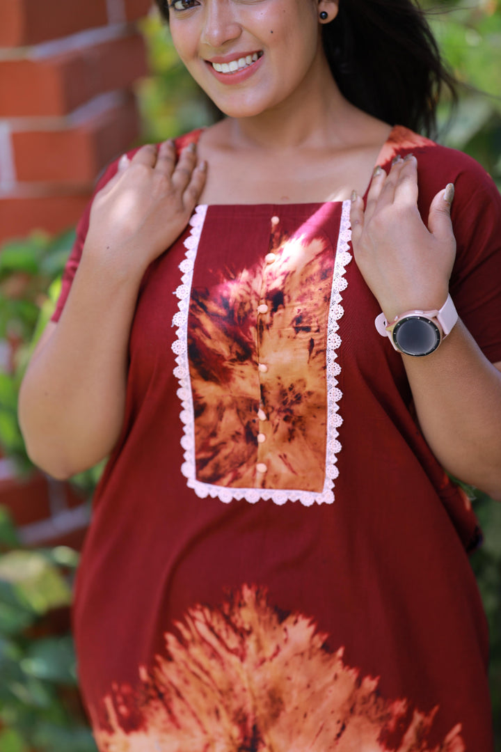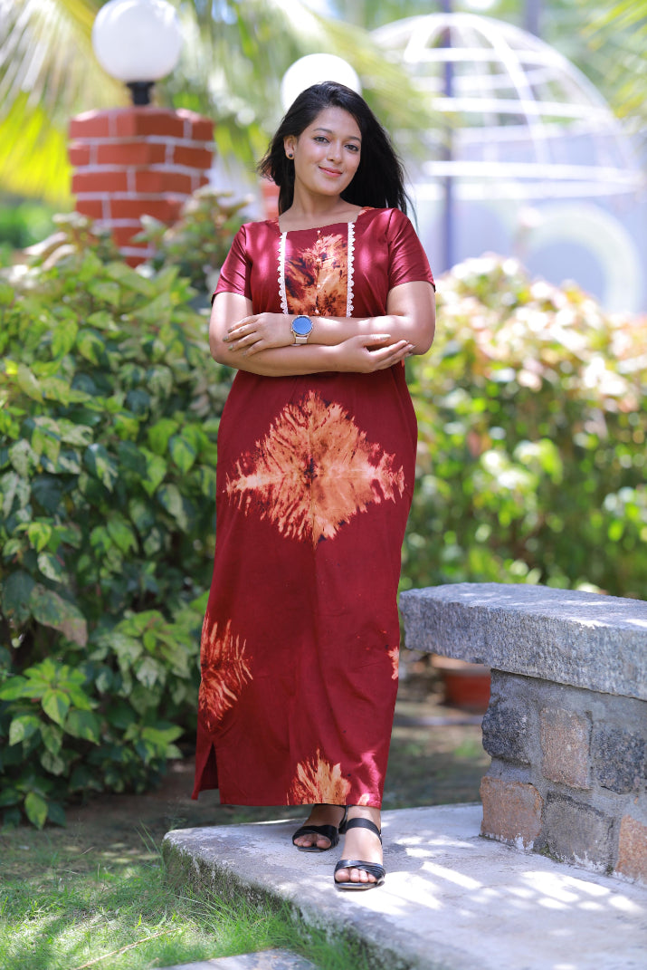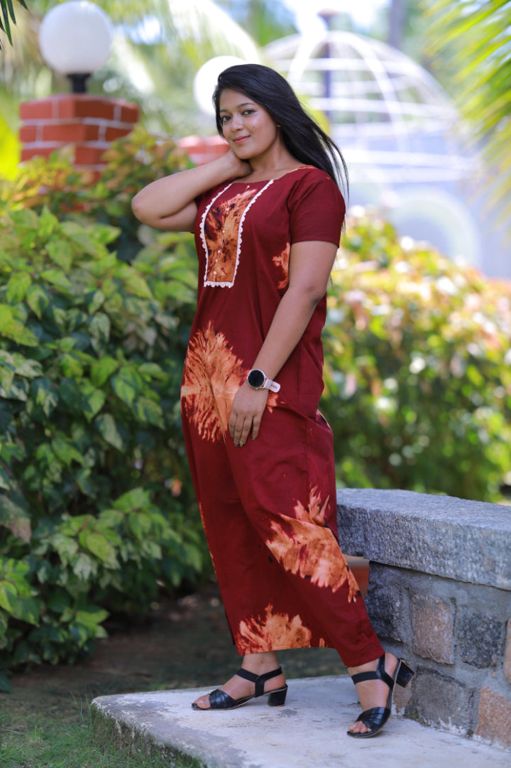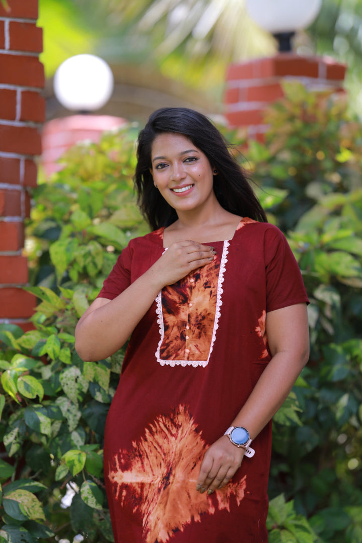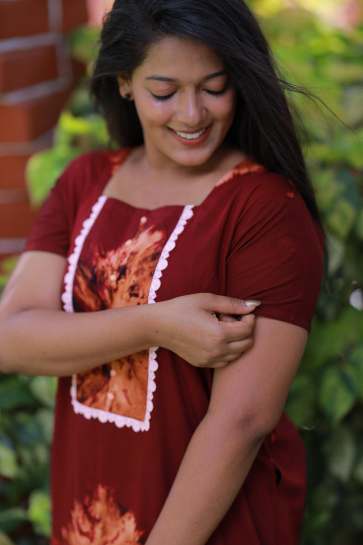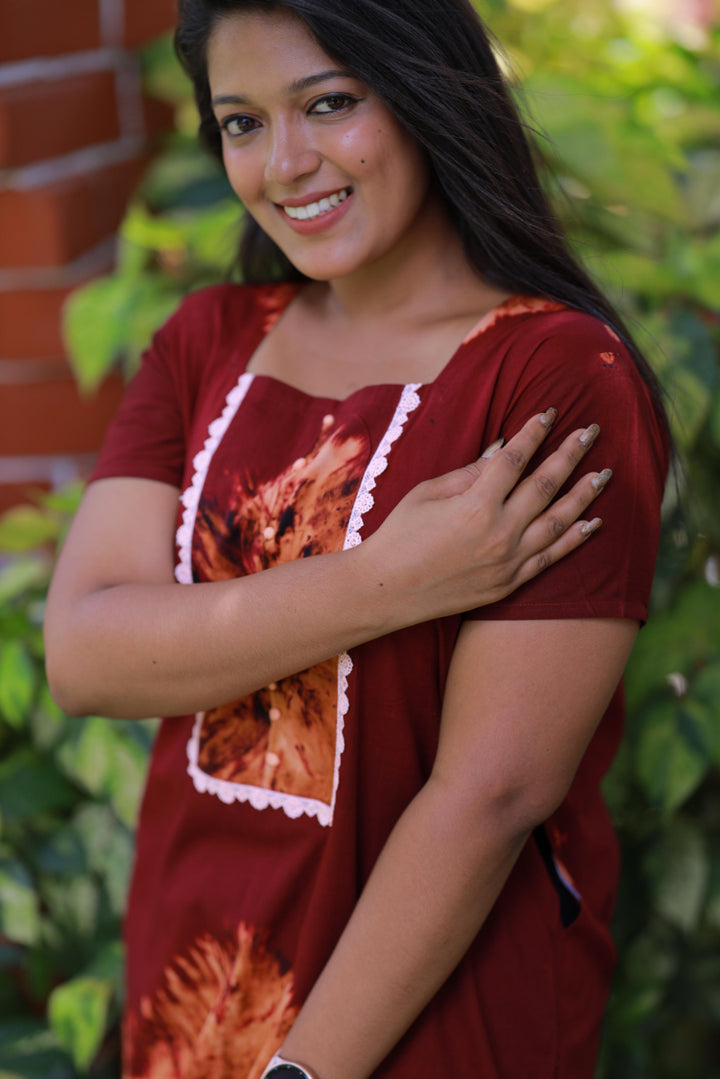 Dark Brown With Maroon Tie and Dye Lace Model Without Zip Nighty