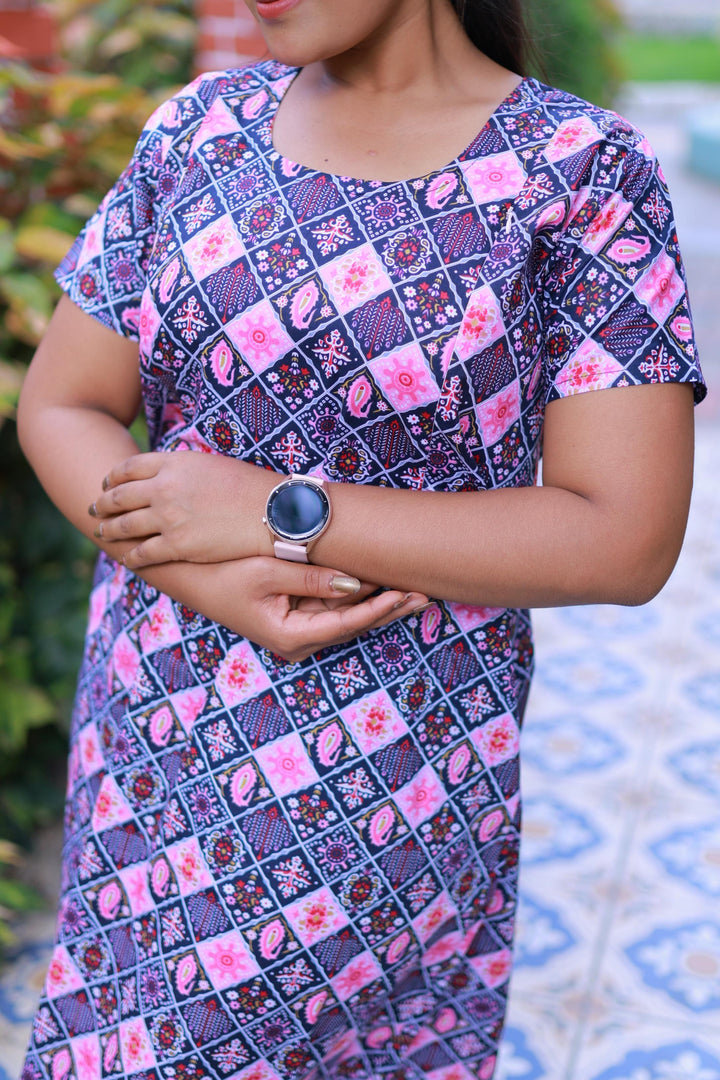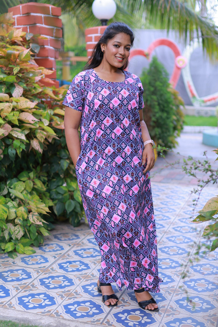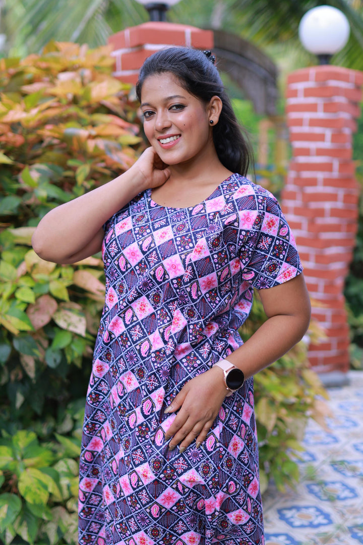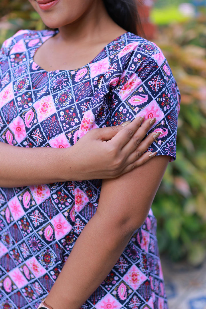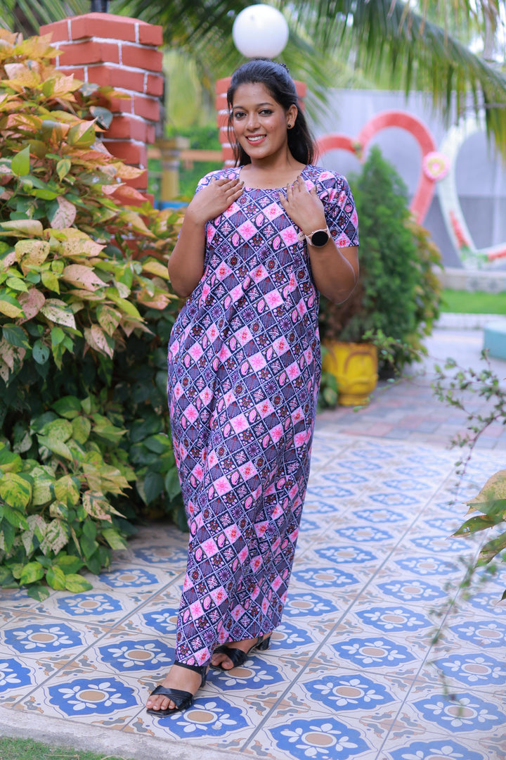 Pink With Purple Floral Design Vertical Side Zip Feeding Nighty