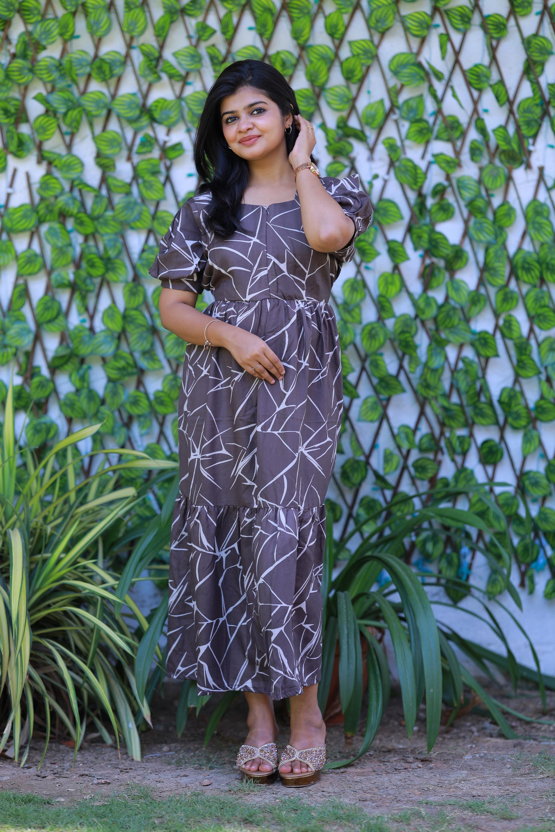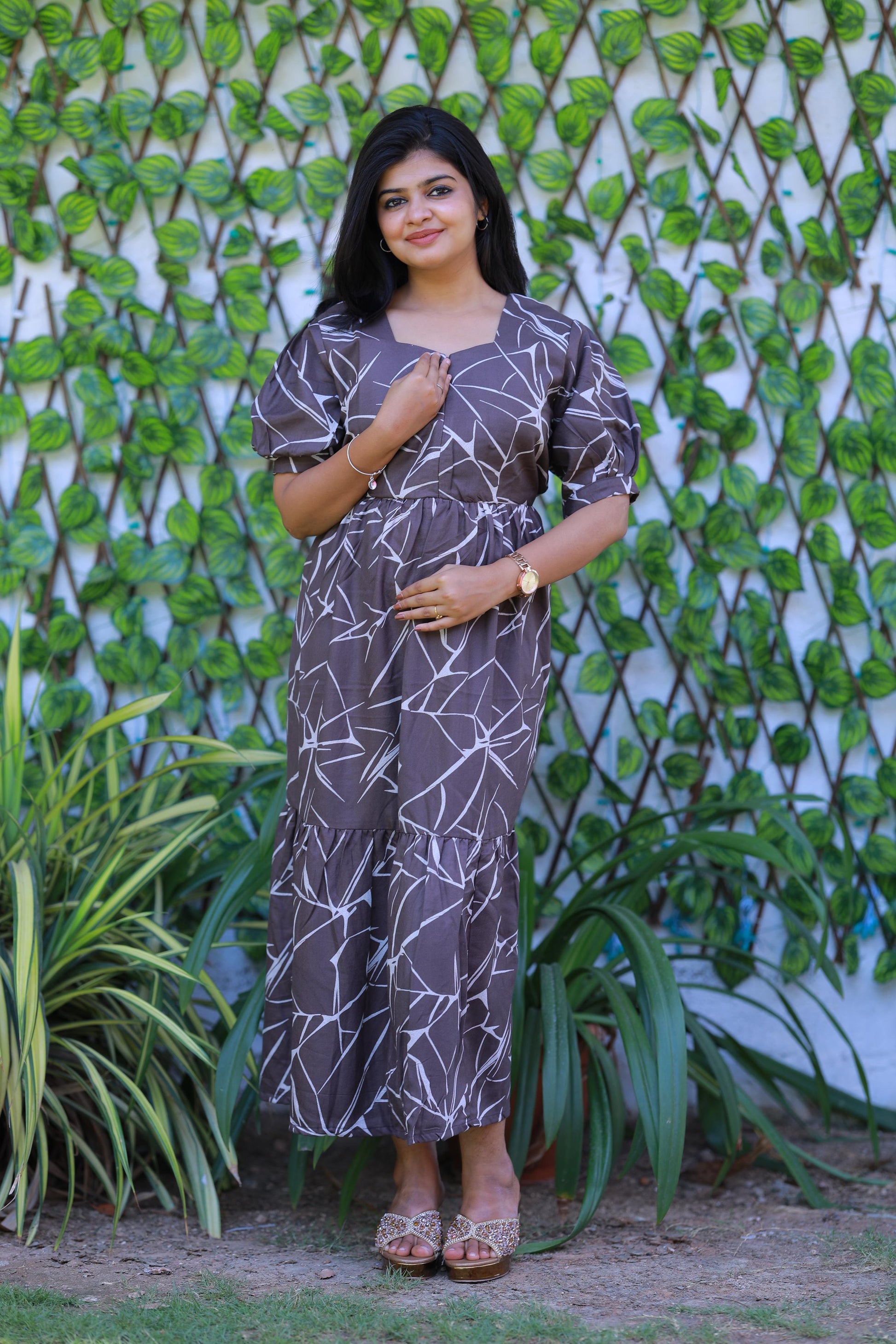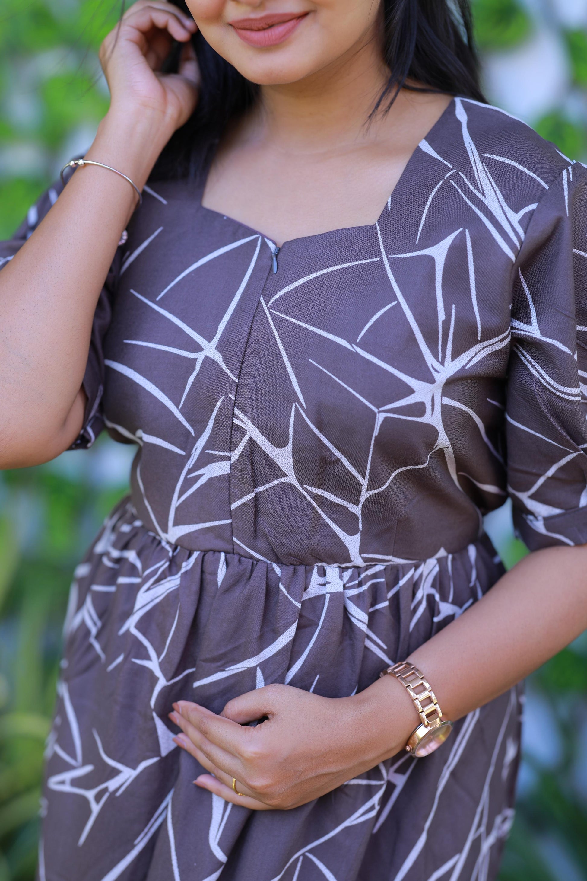Dark Gray with White Pattern Double Layer Alphine design Center zip Frock