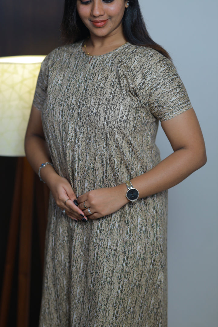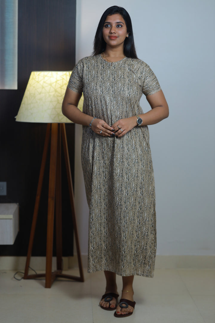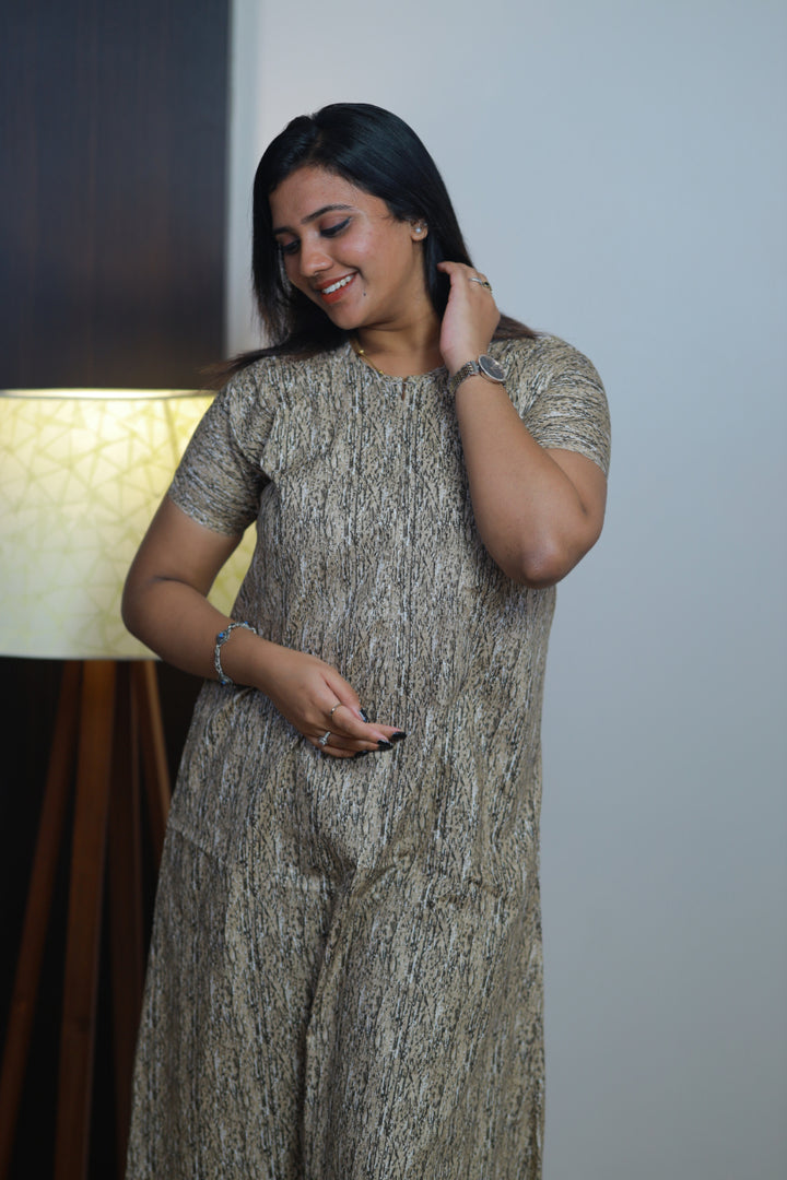 Sandal with Brown digital design Long Zip Feeding Nighty