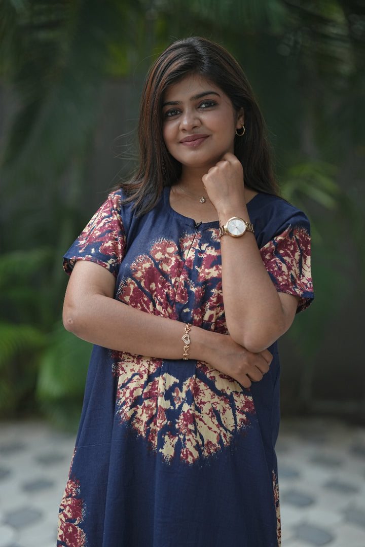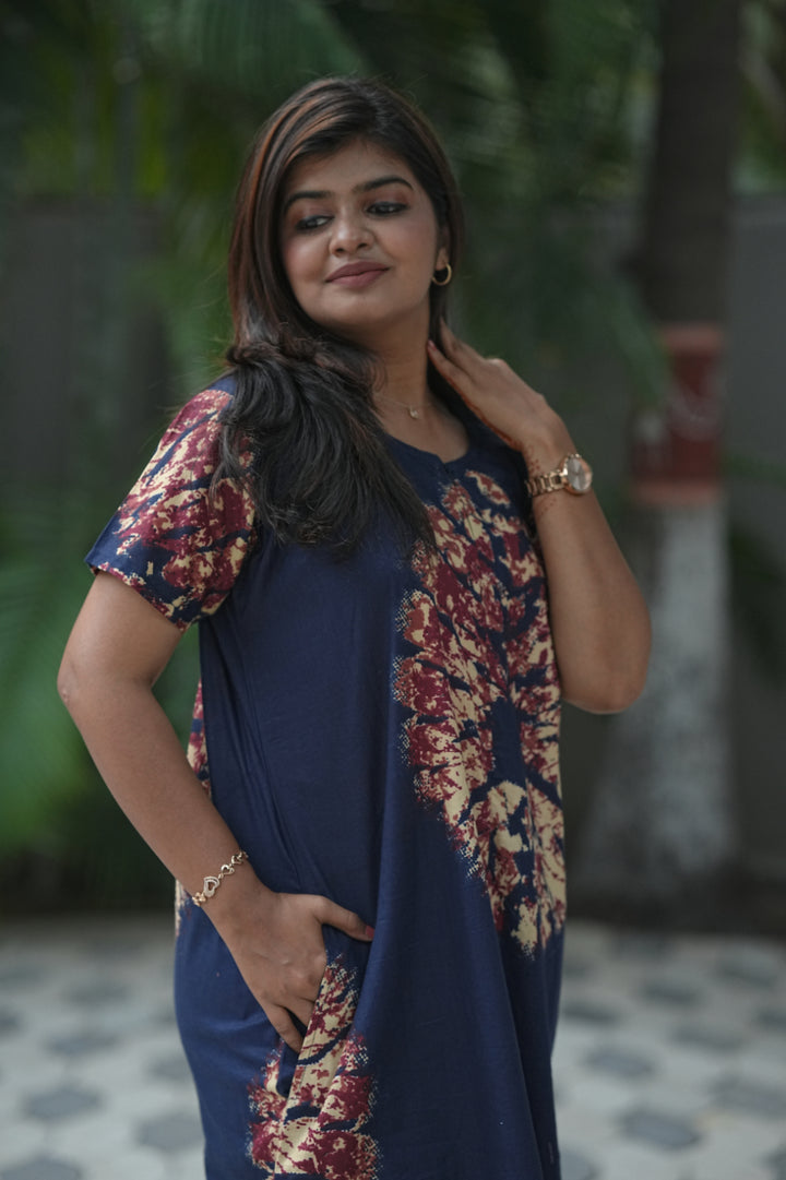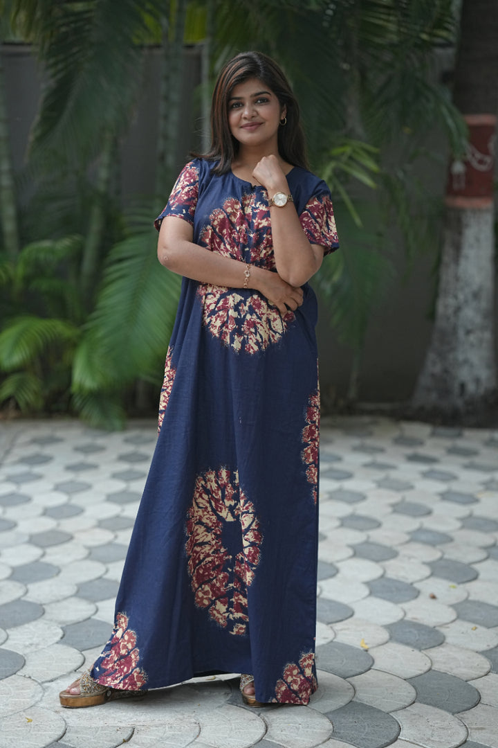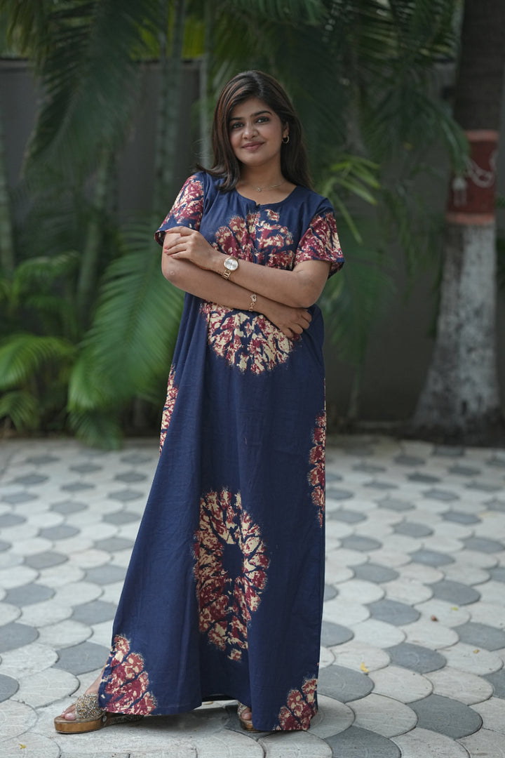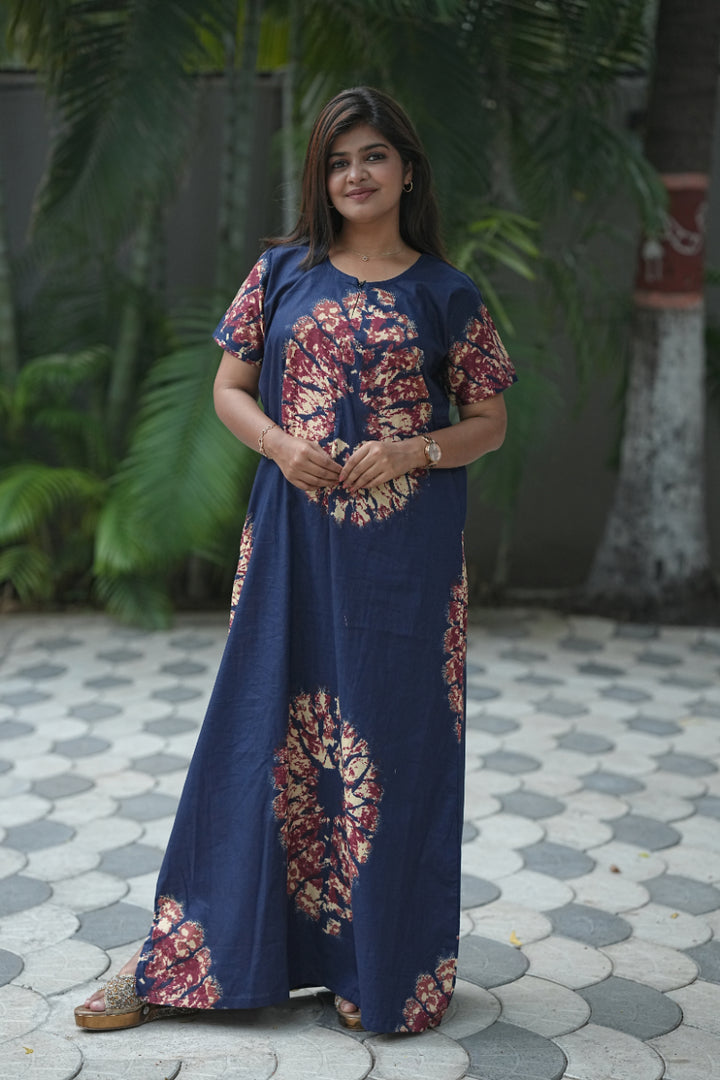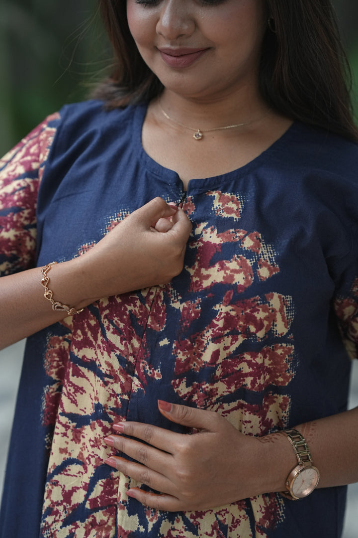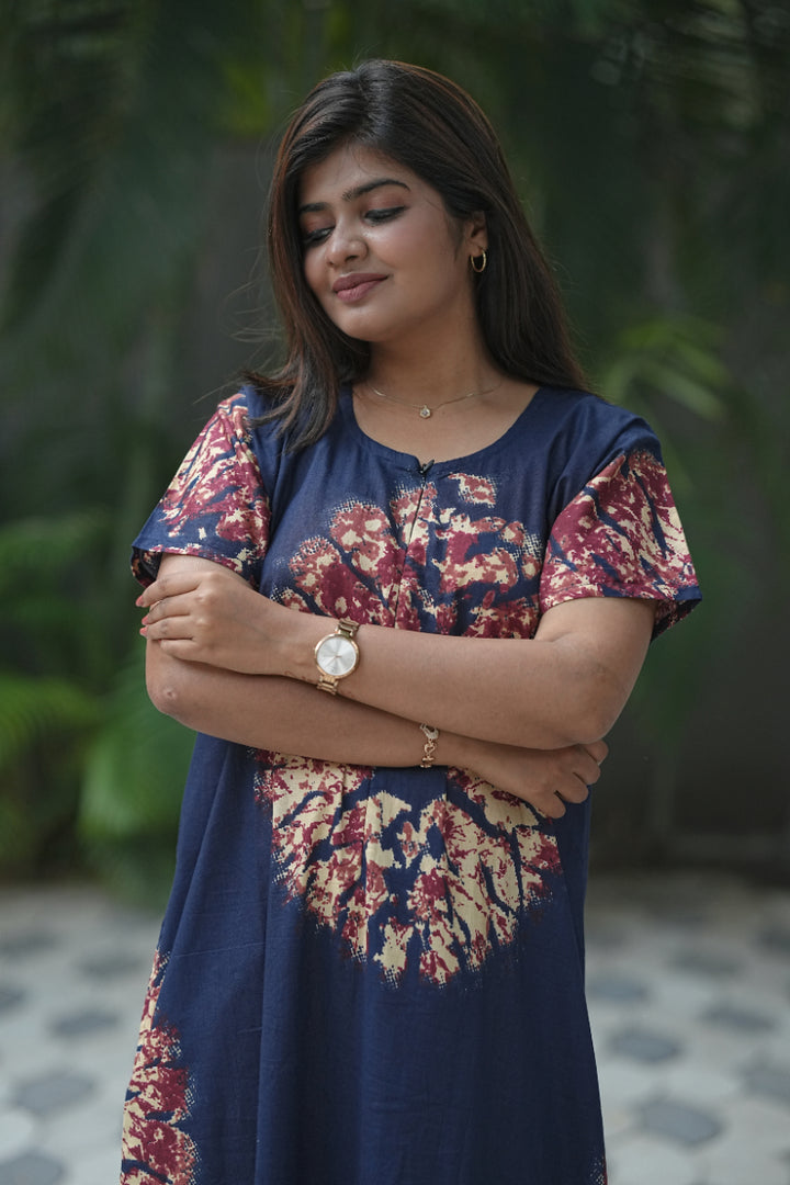 Dark Blue With Brown Invisible Center Zip Feeding Nighty