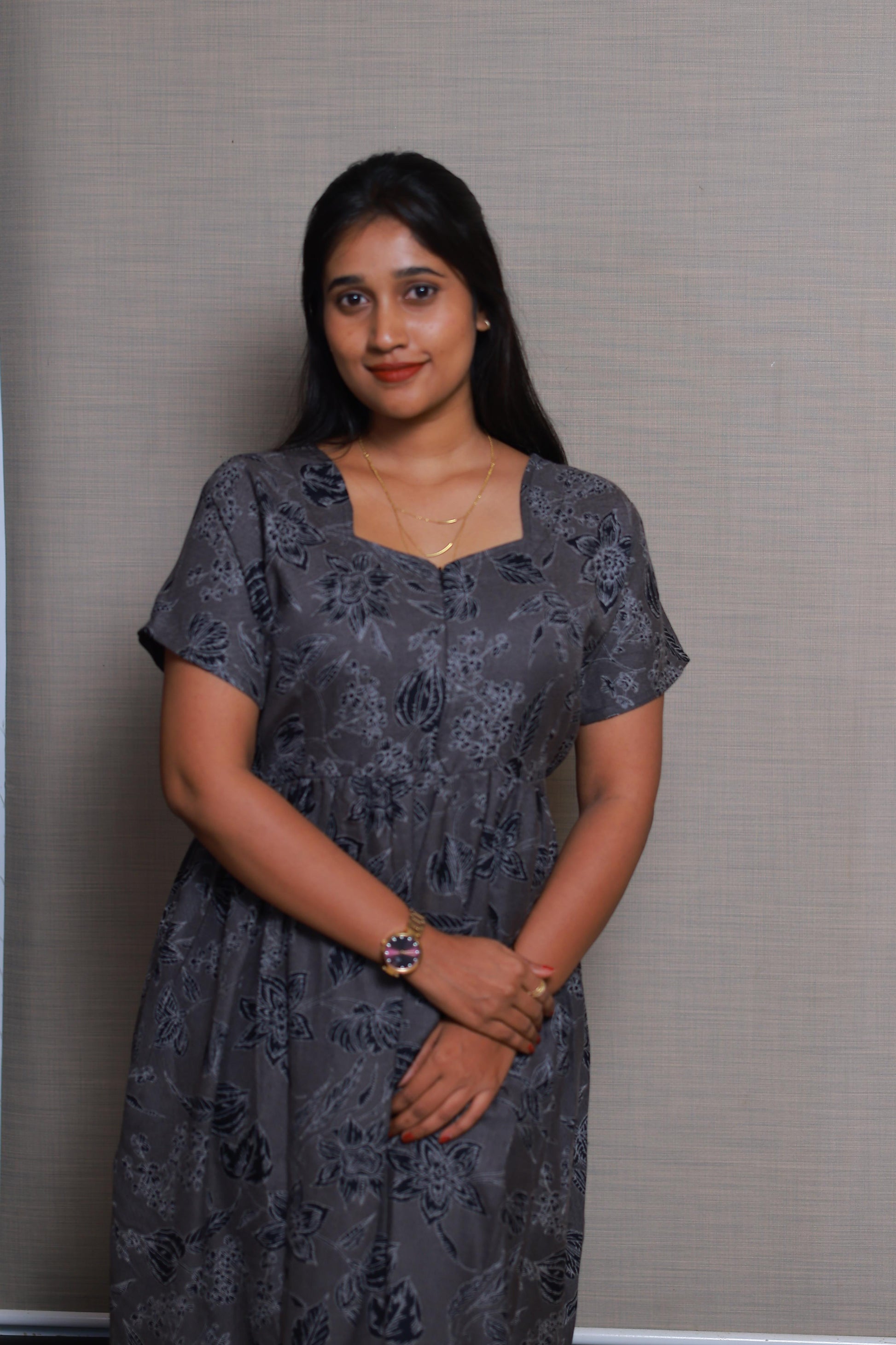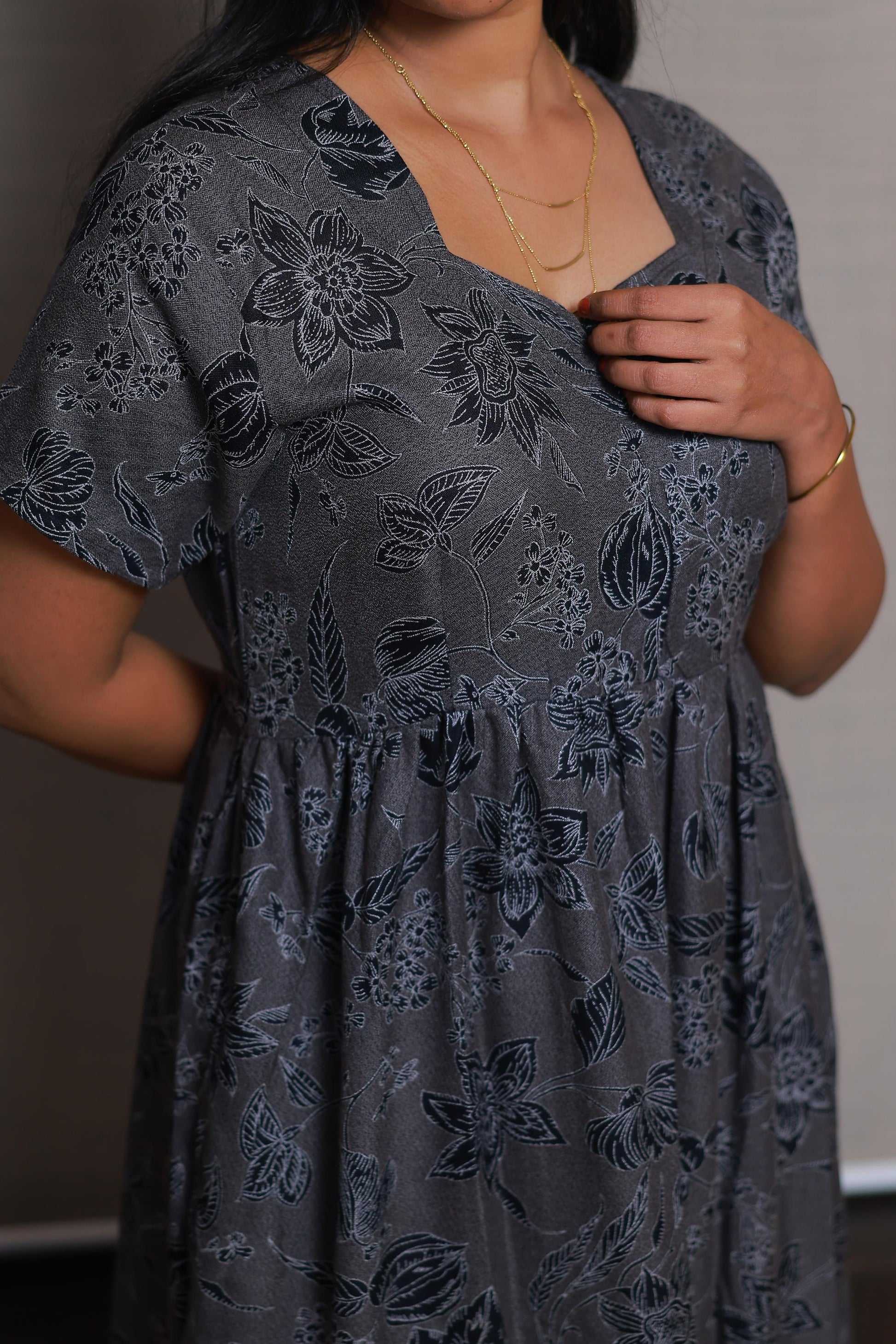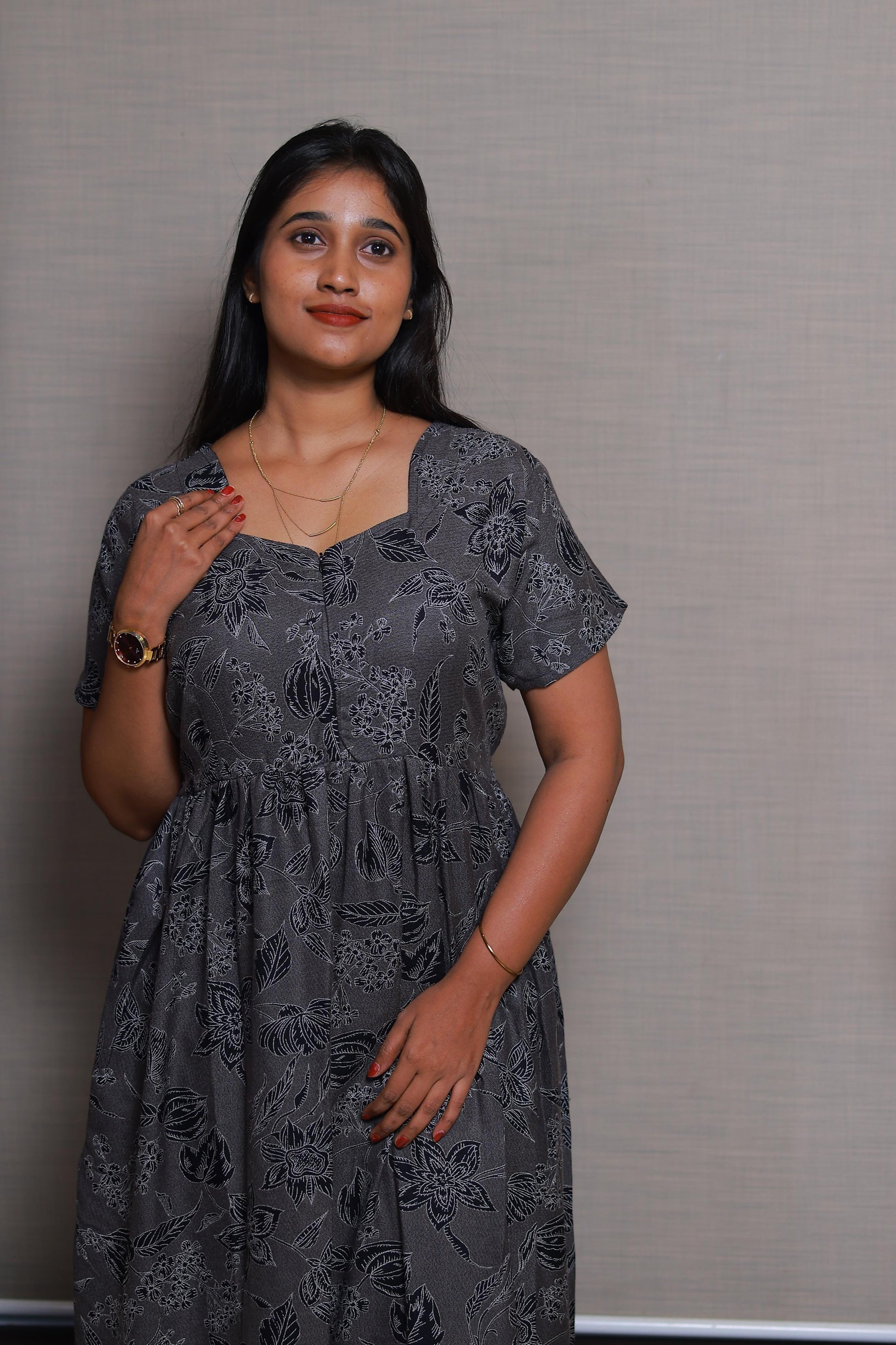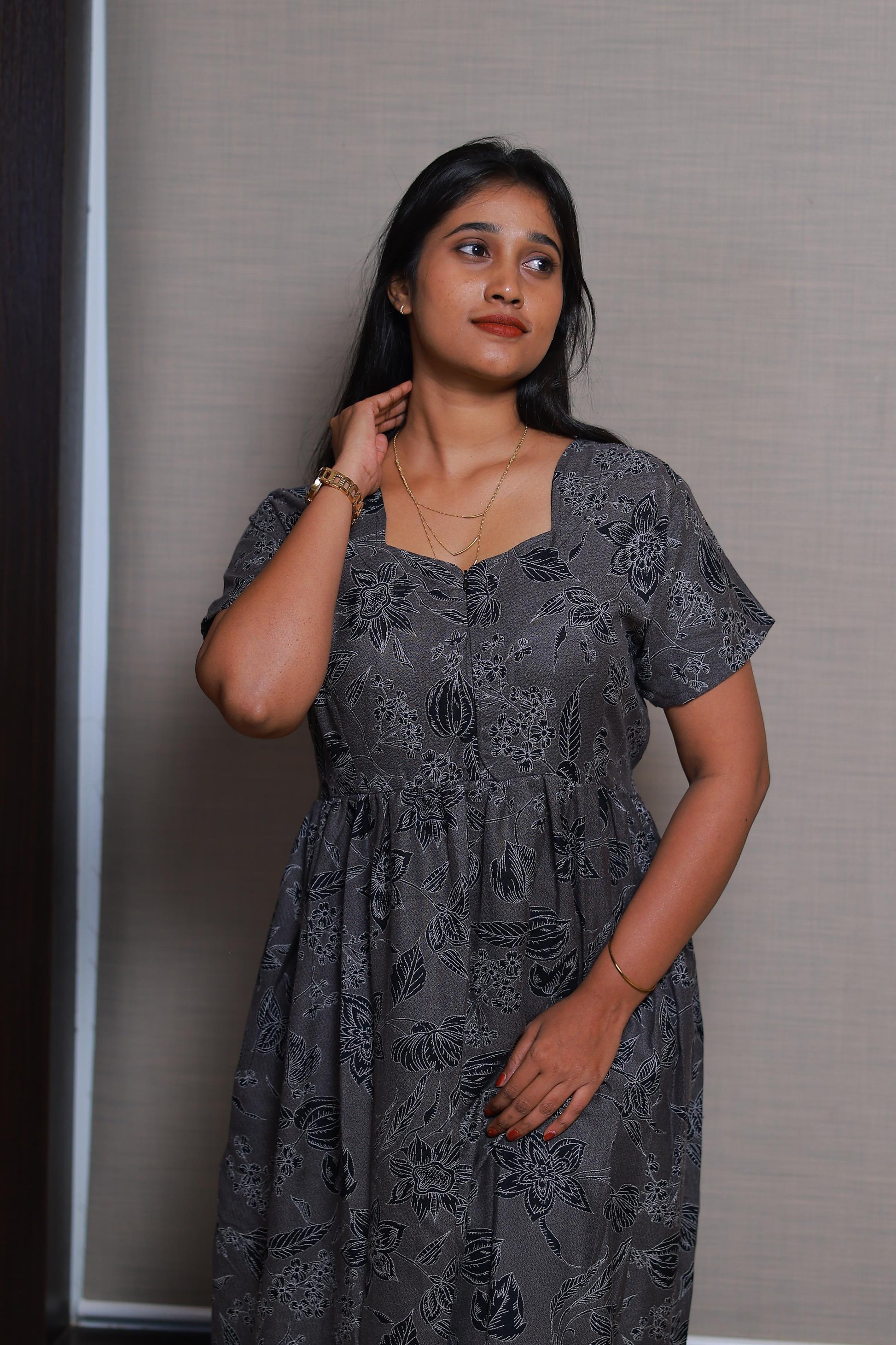Gray with White Flower Design Double Layer Alphine design Center zip Frock