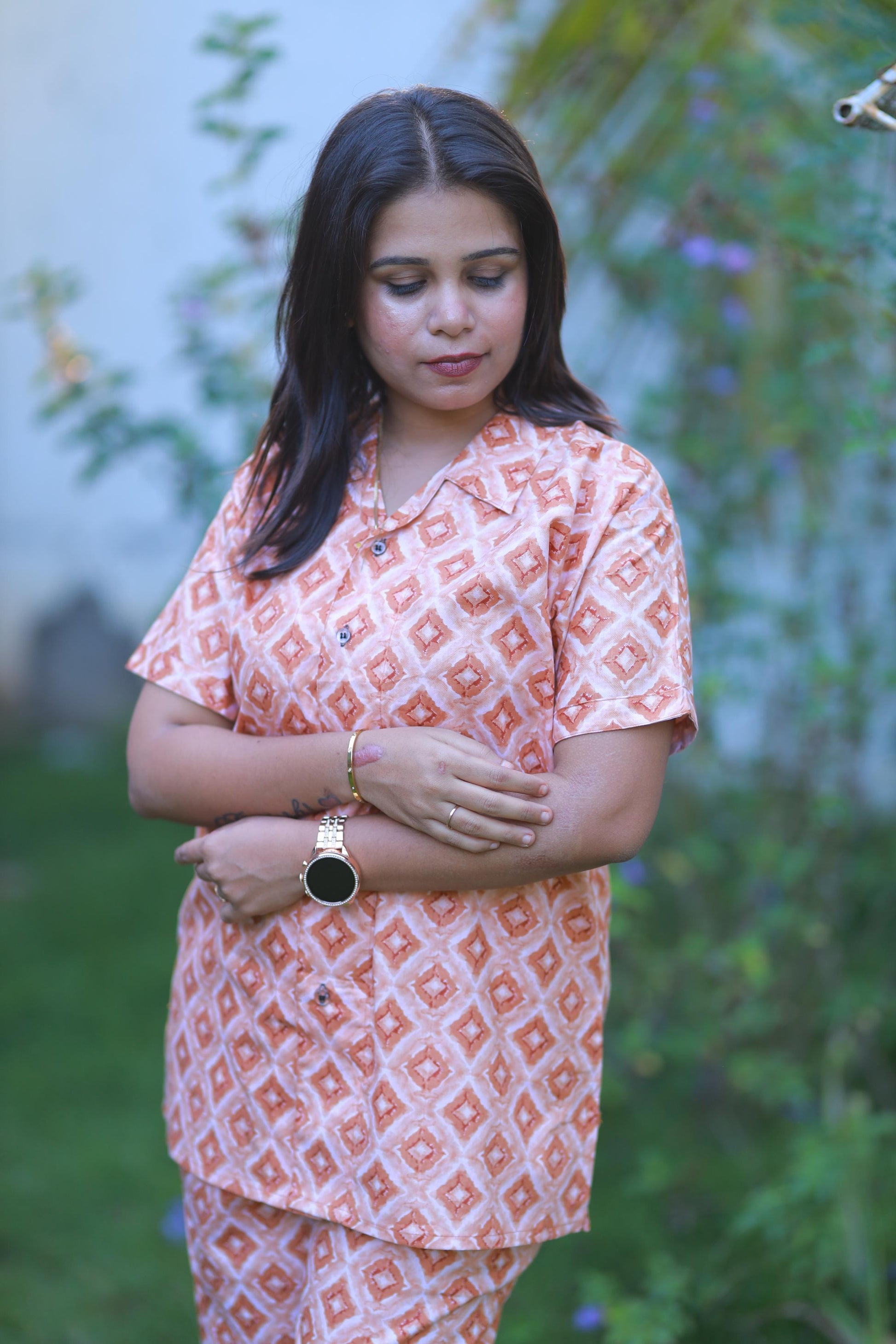 FANCY - Sandal opal design full button collar type Nightdress