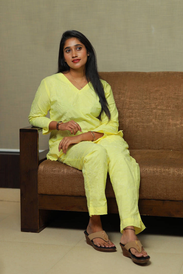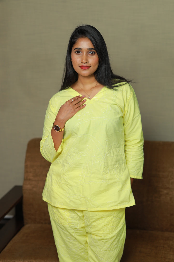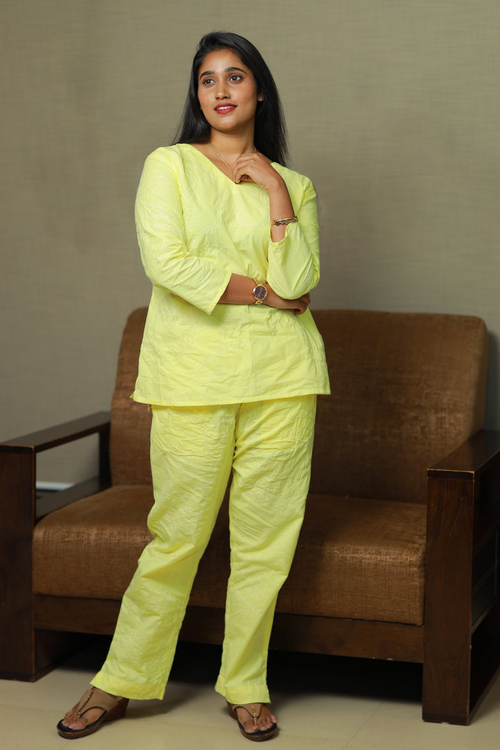 Lemon Yellow Vibrant Colour Pure cotton co ord set (2 set )