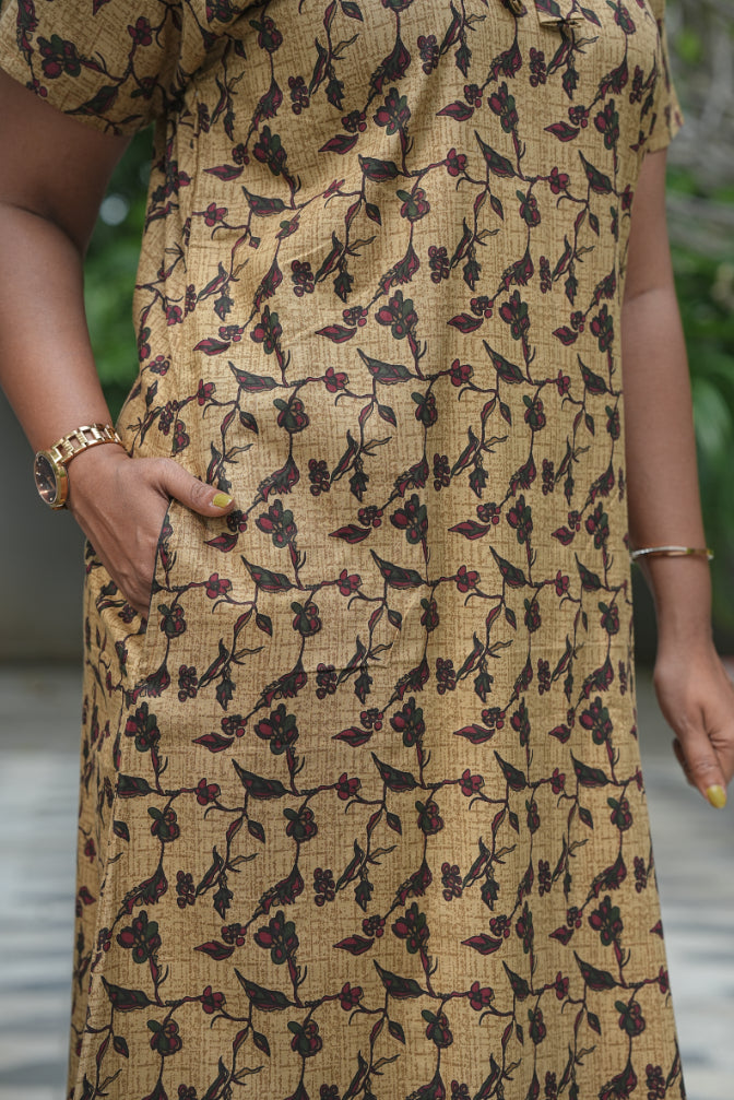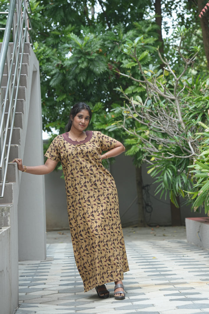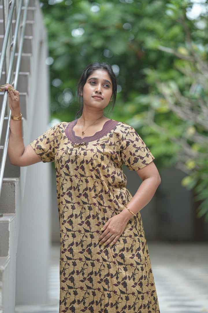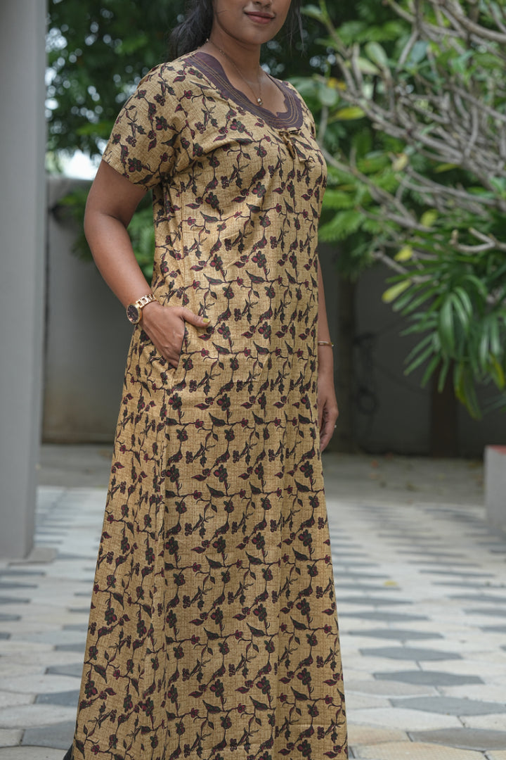 Light Brown With Green & Red Floral Design Ziplees Nighty