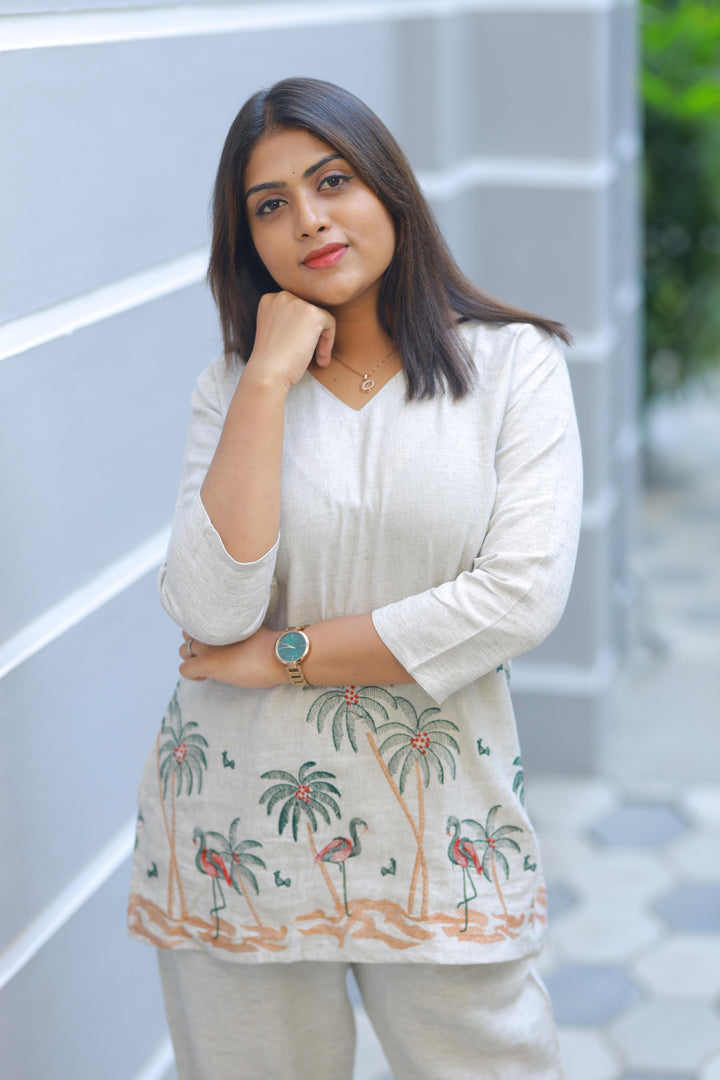 Light Sandal With Green coconut Tree Embroidery Design Lenin nightdress