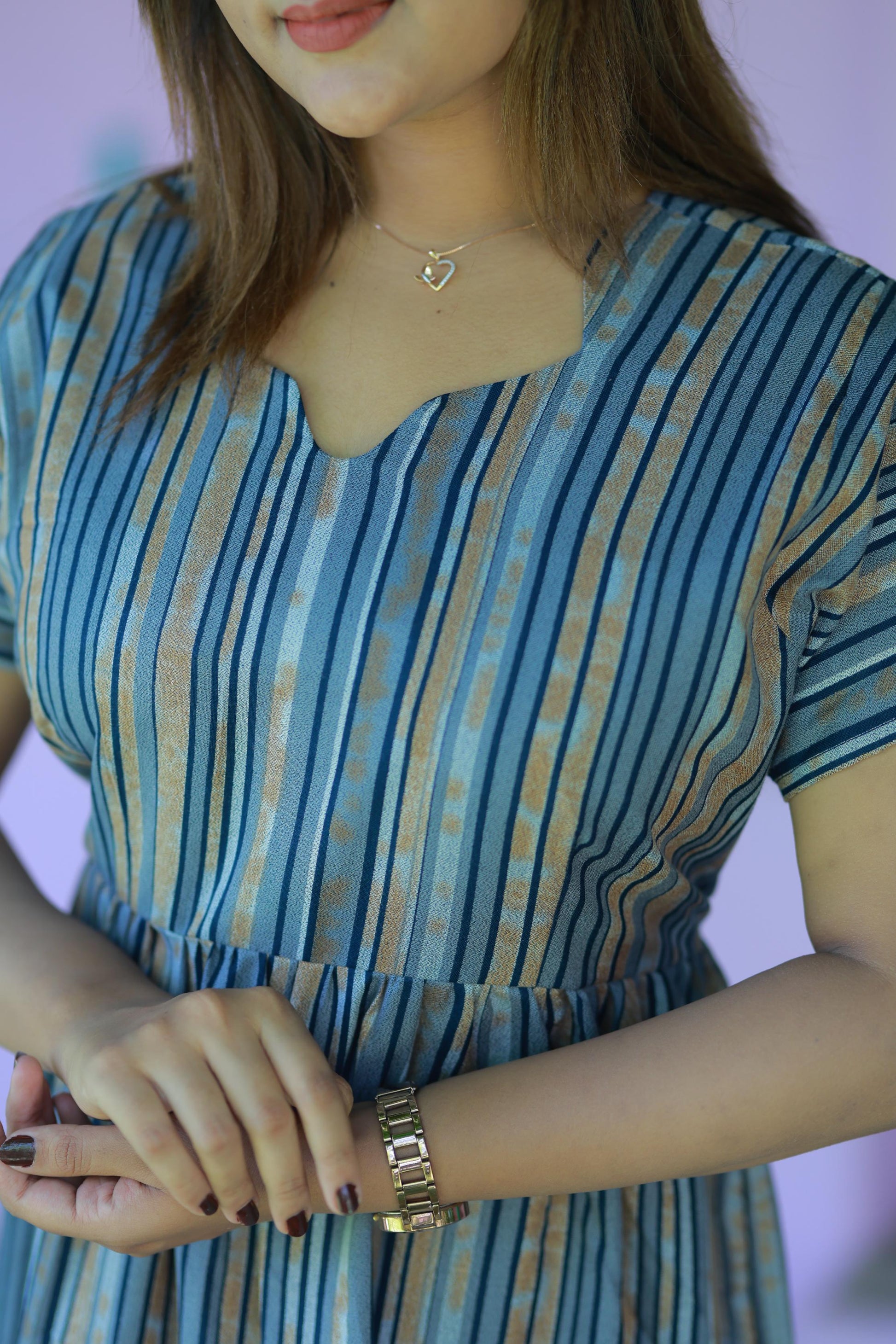 Brown with peach Colour Double Layer Alphine design Without zip Frock