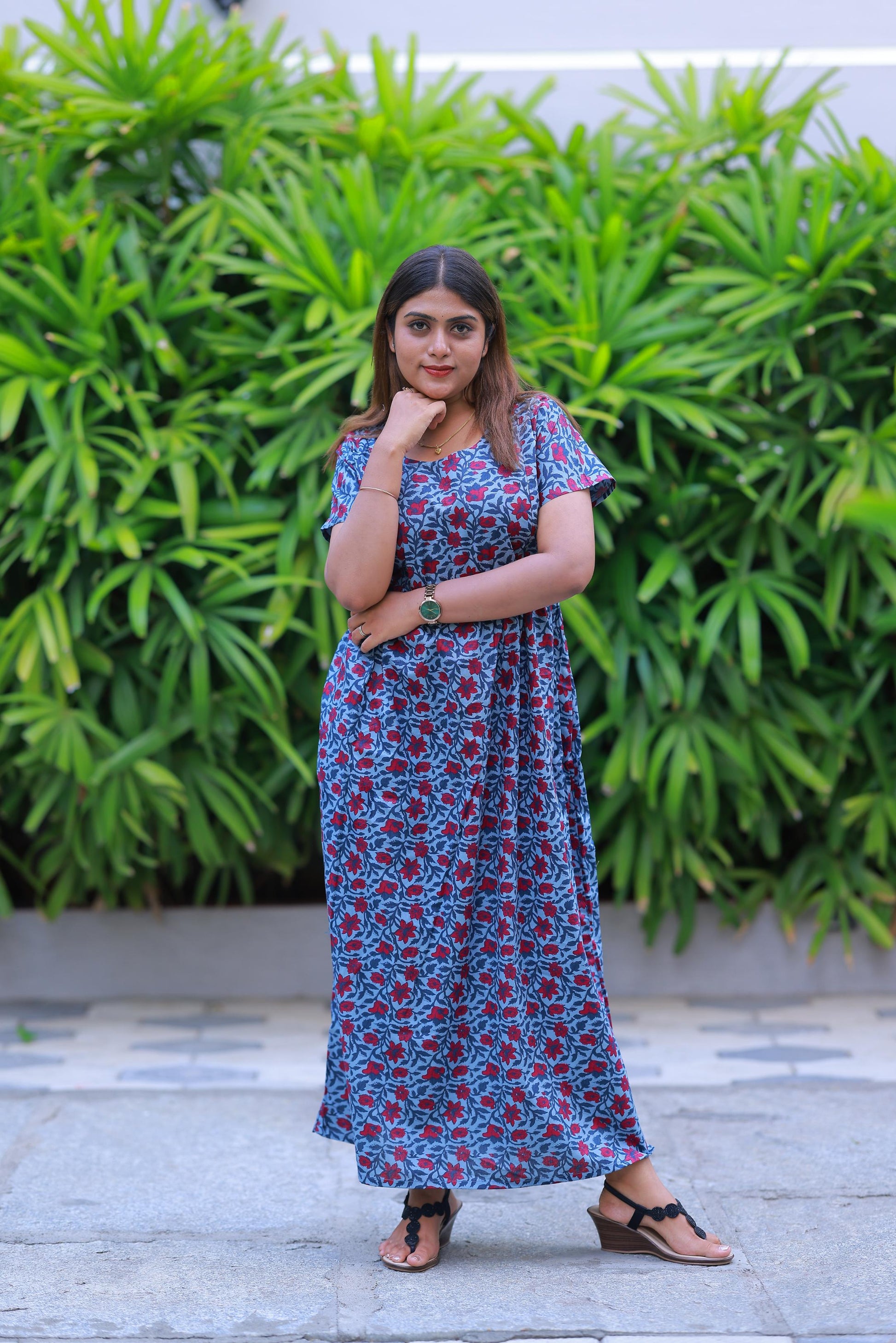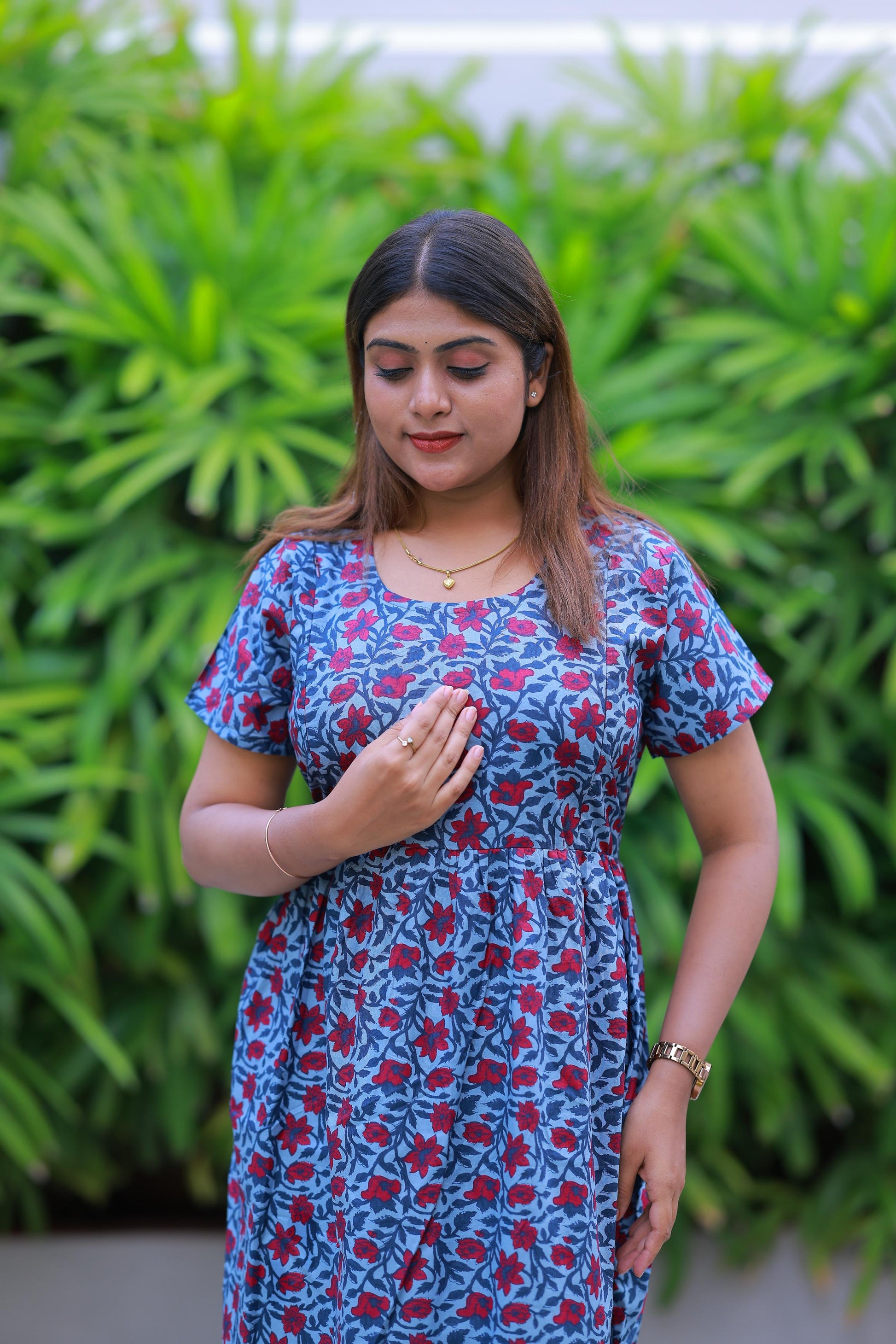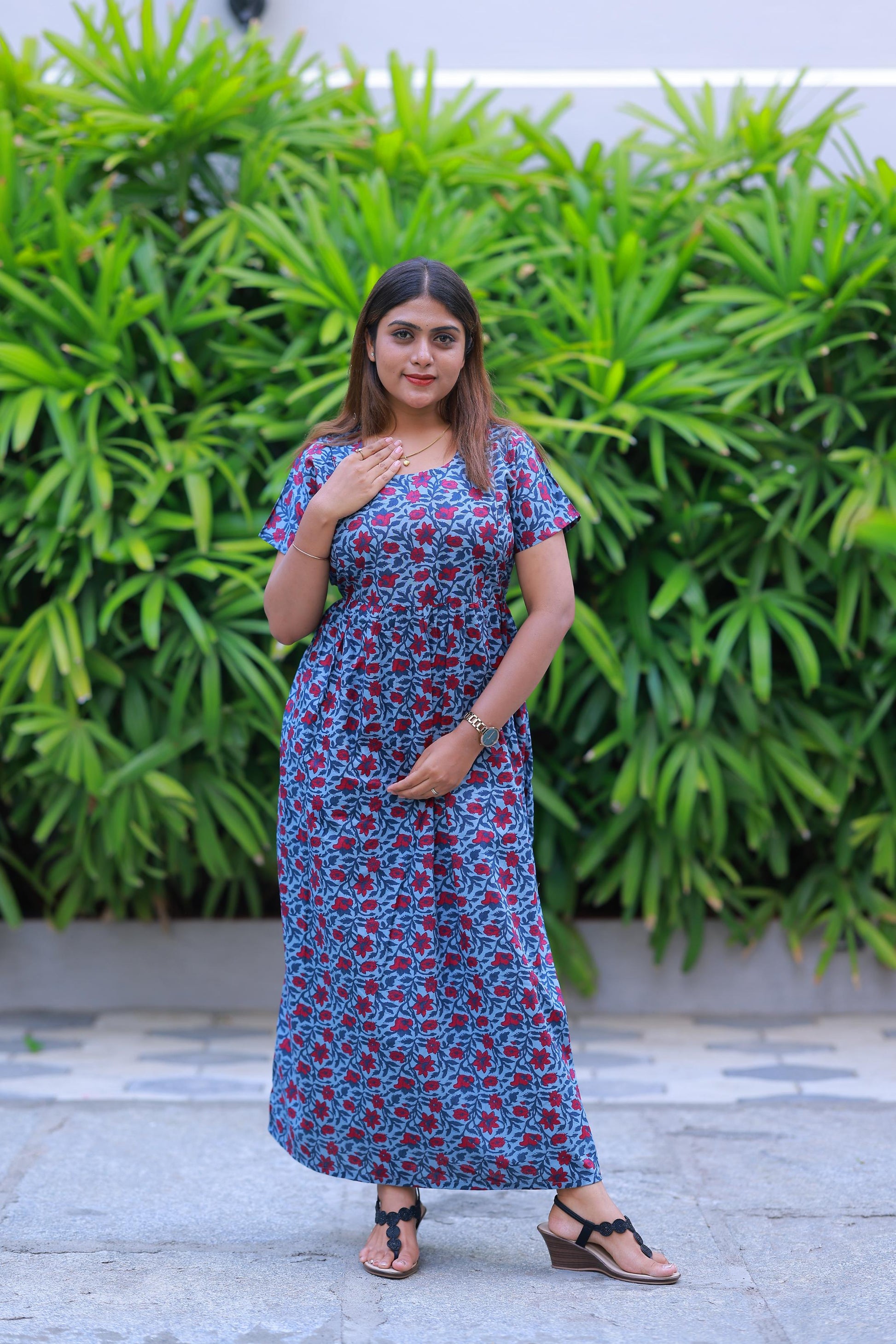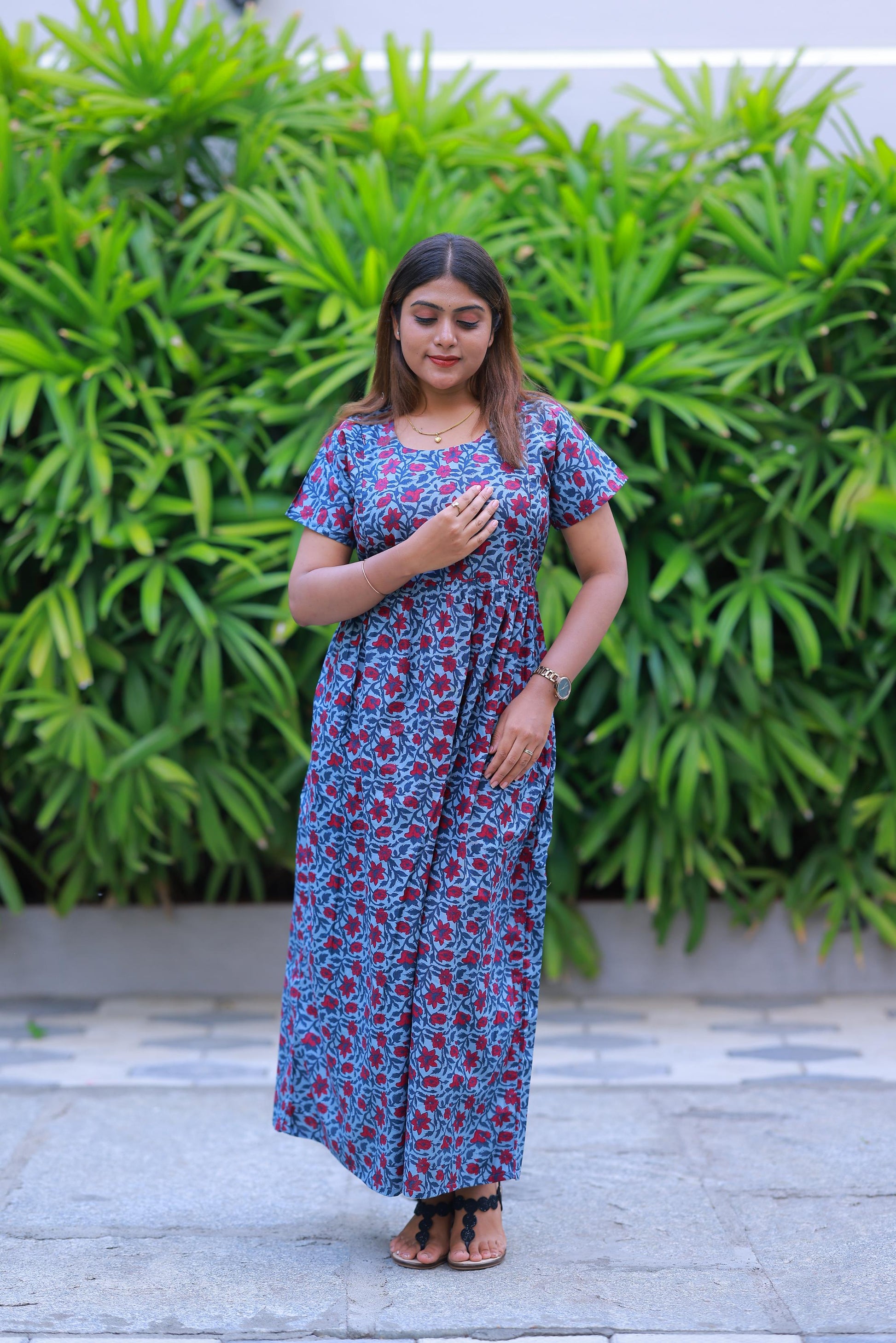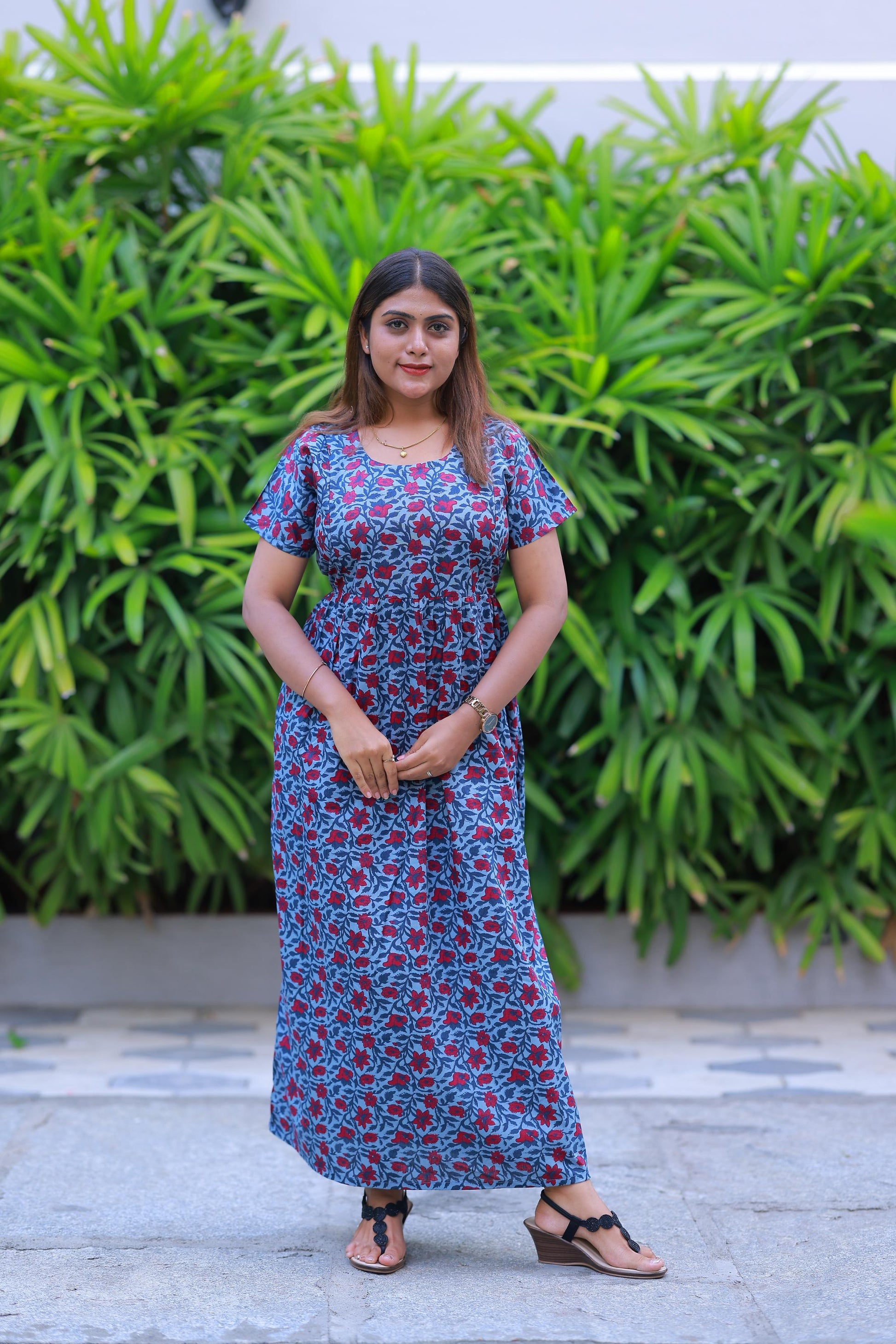 Light Gray With Red Flower design with side zip Frock
