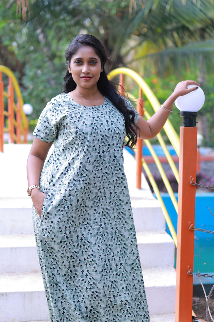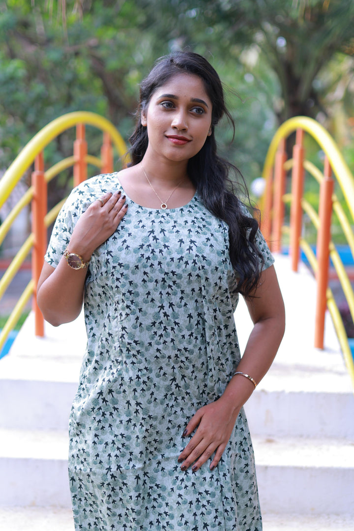 Light Green With Black Vertical Side Zip Feeding Nighty