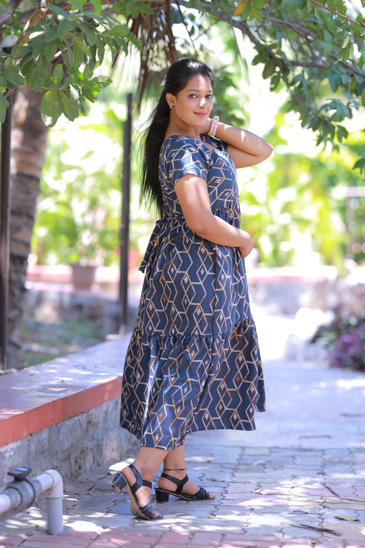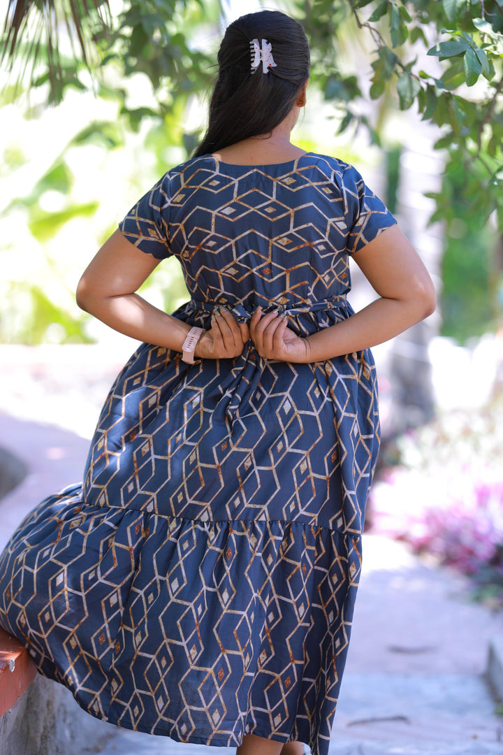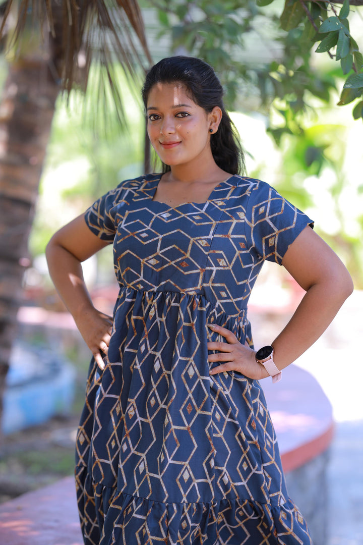 Drak Gray with Daimond Pattern Double Layer Alphine design Side zip Frock
