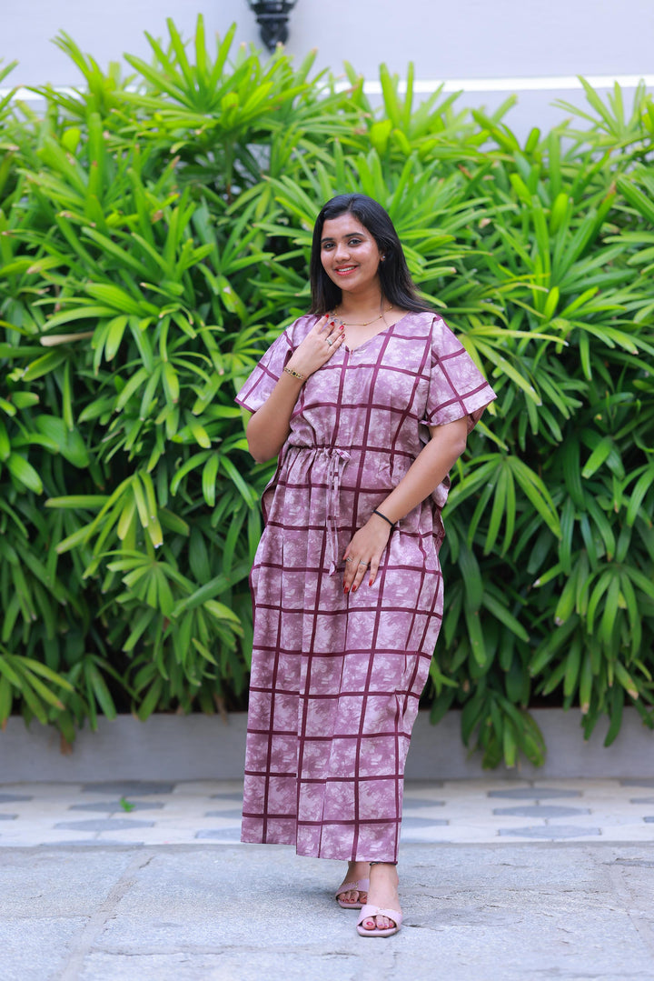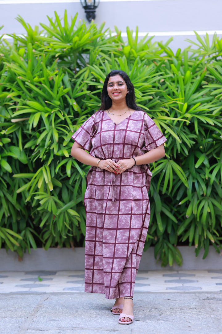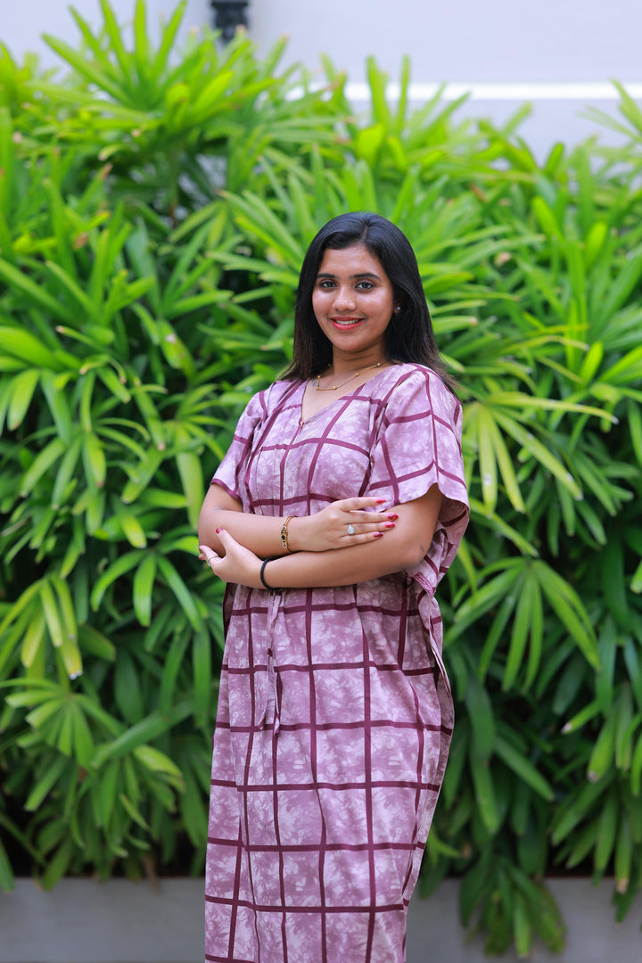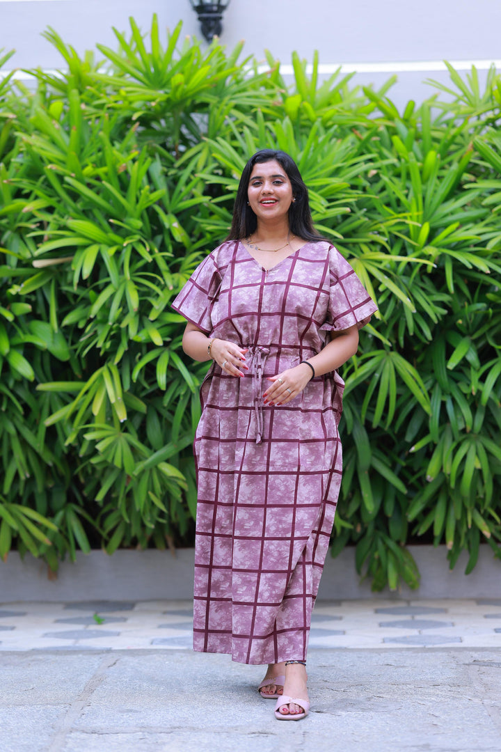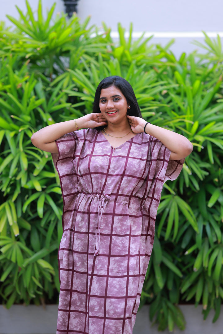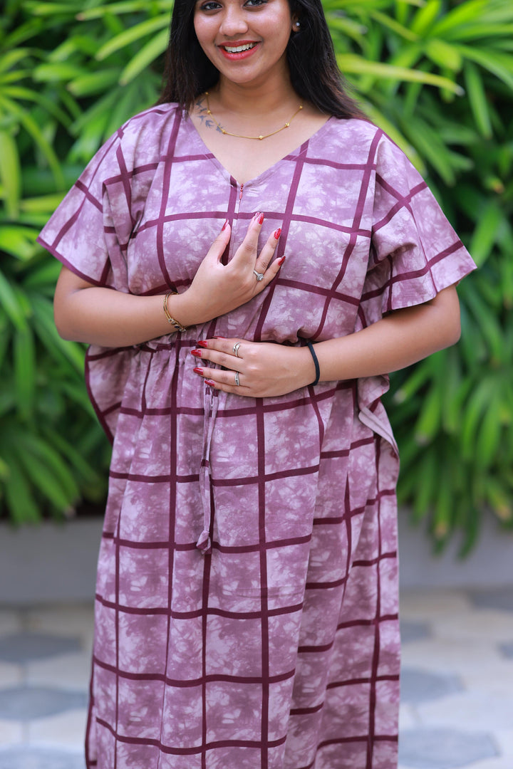 Light Purple With Purple Checked Design kaftan center zip
