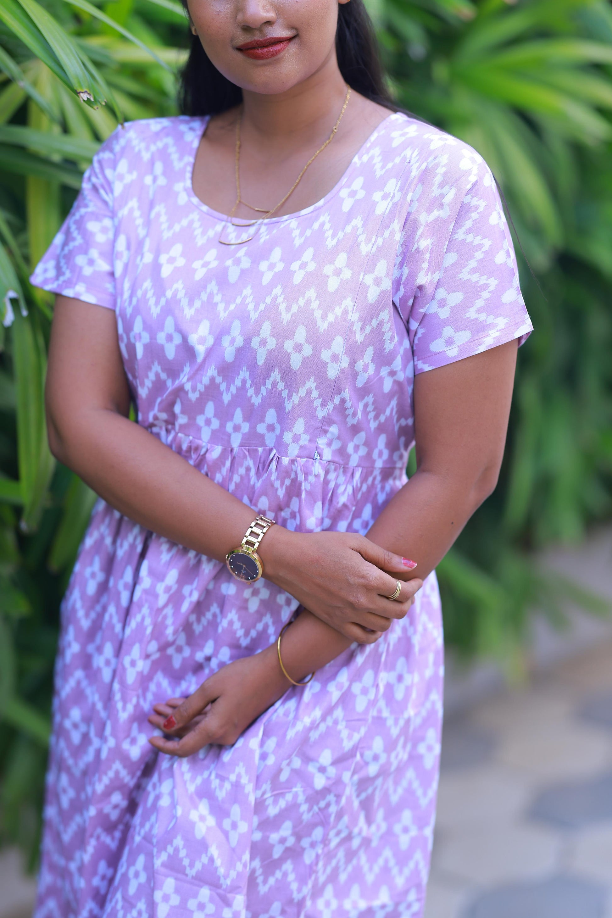 Light Voilet With White design with side zip Frock