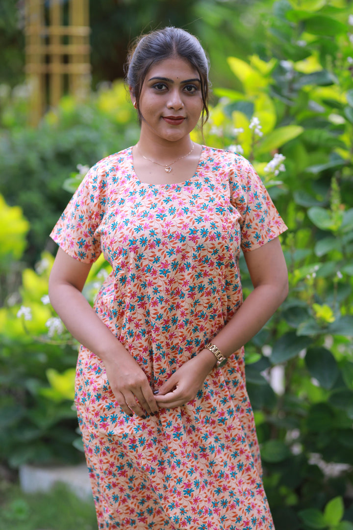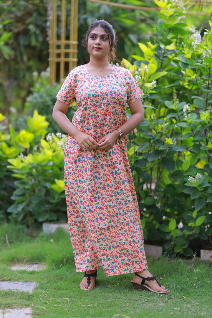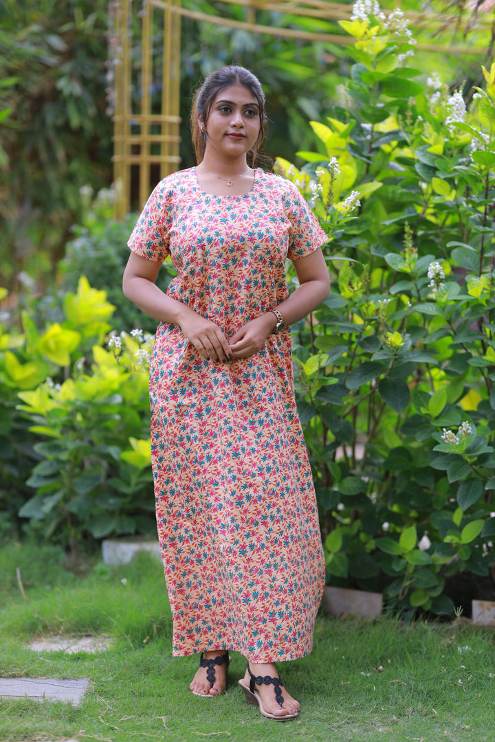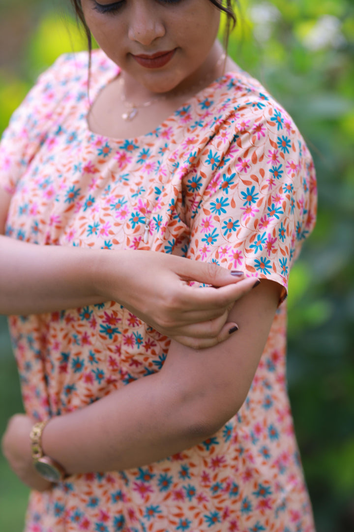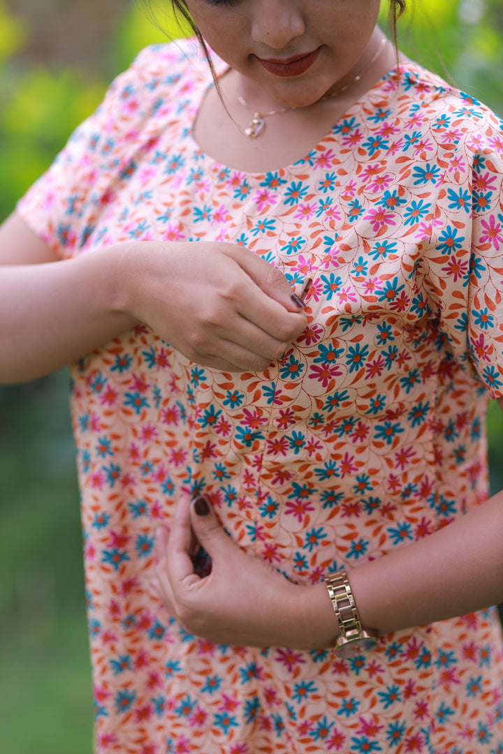 Orange With Purple and Green Flower Design Vertical Side Zip Feeding Nighty