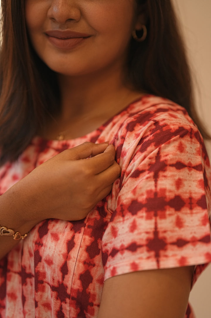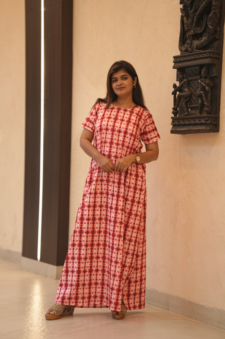 Lite Pink With Maroon Vertical Side Zip Feeding Nighty