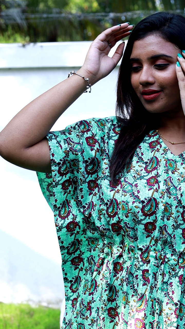 - Kaftan Comes with Double Stitching , overlock and front rope