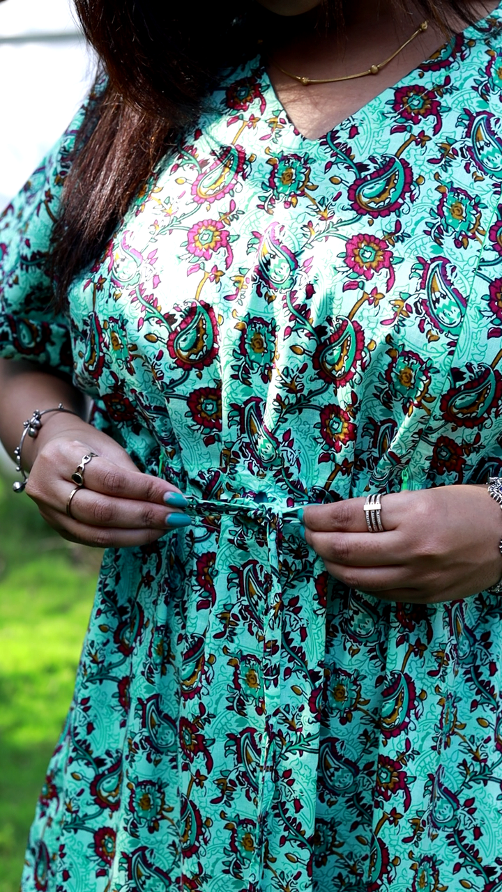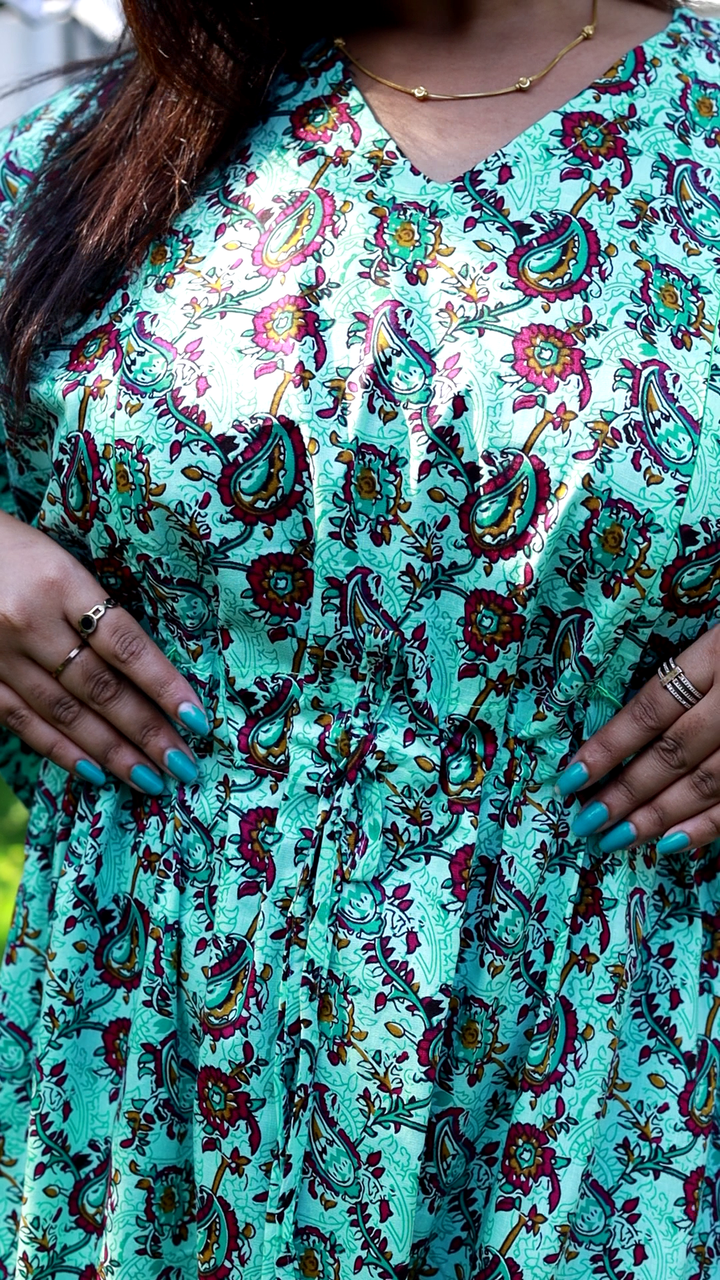 Pretty kalamkari print casual cotton kaftan with feeding side zip