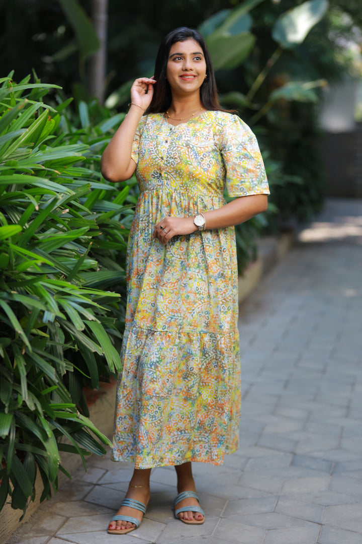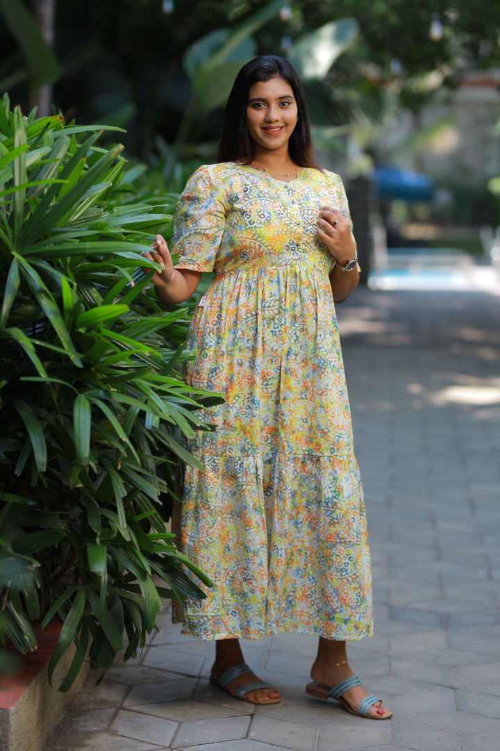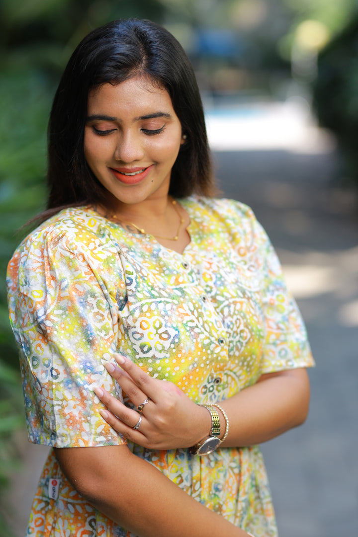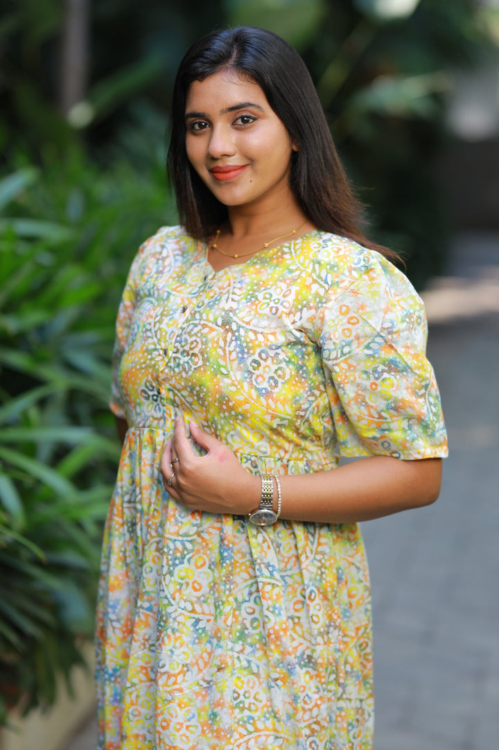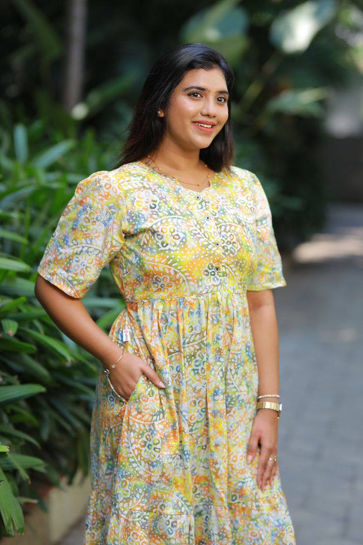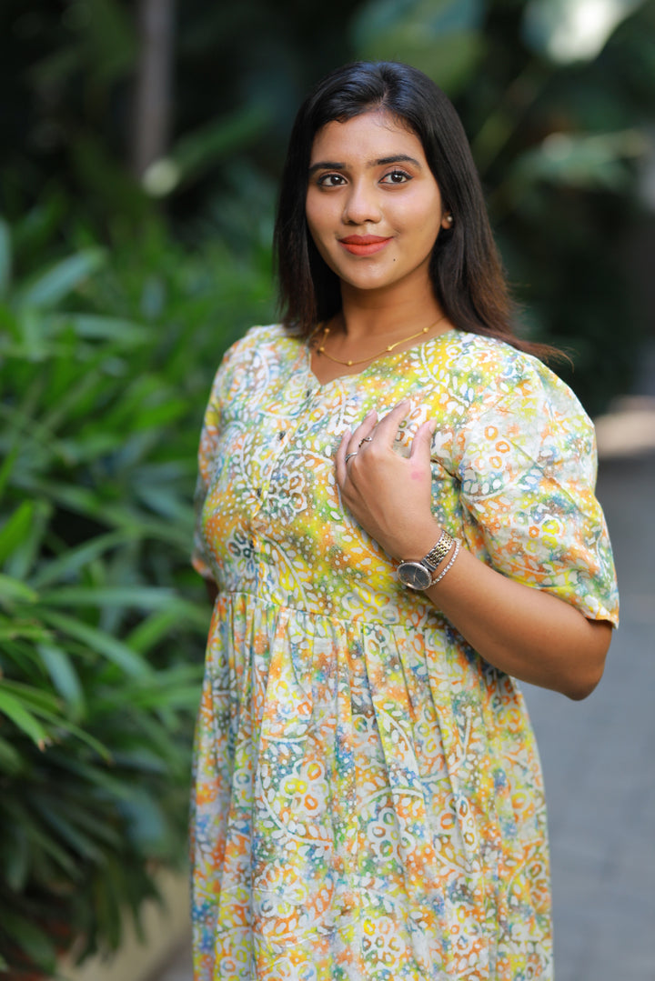 Pure cotton Hand Dyed multi color Batik double layer frock with Center button