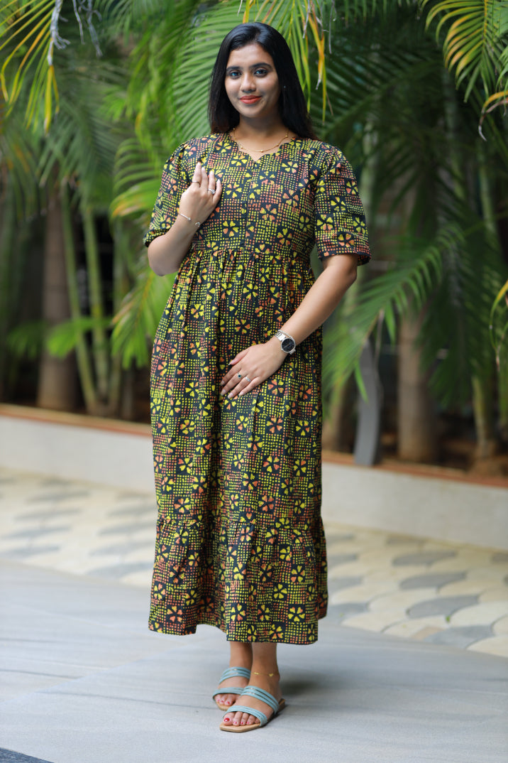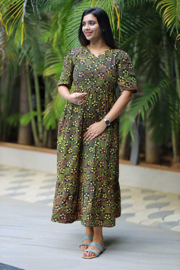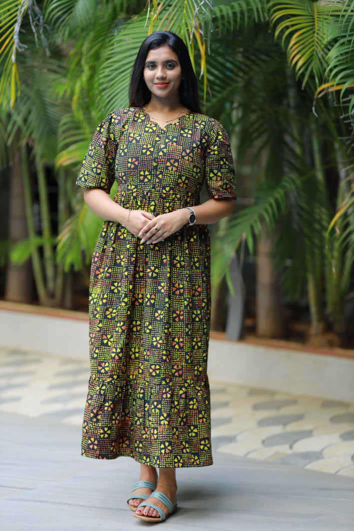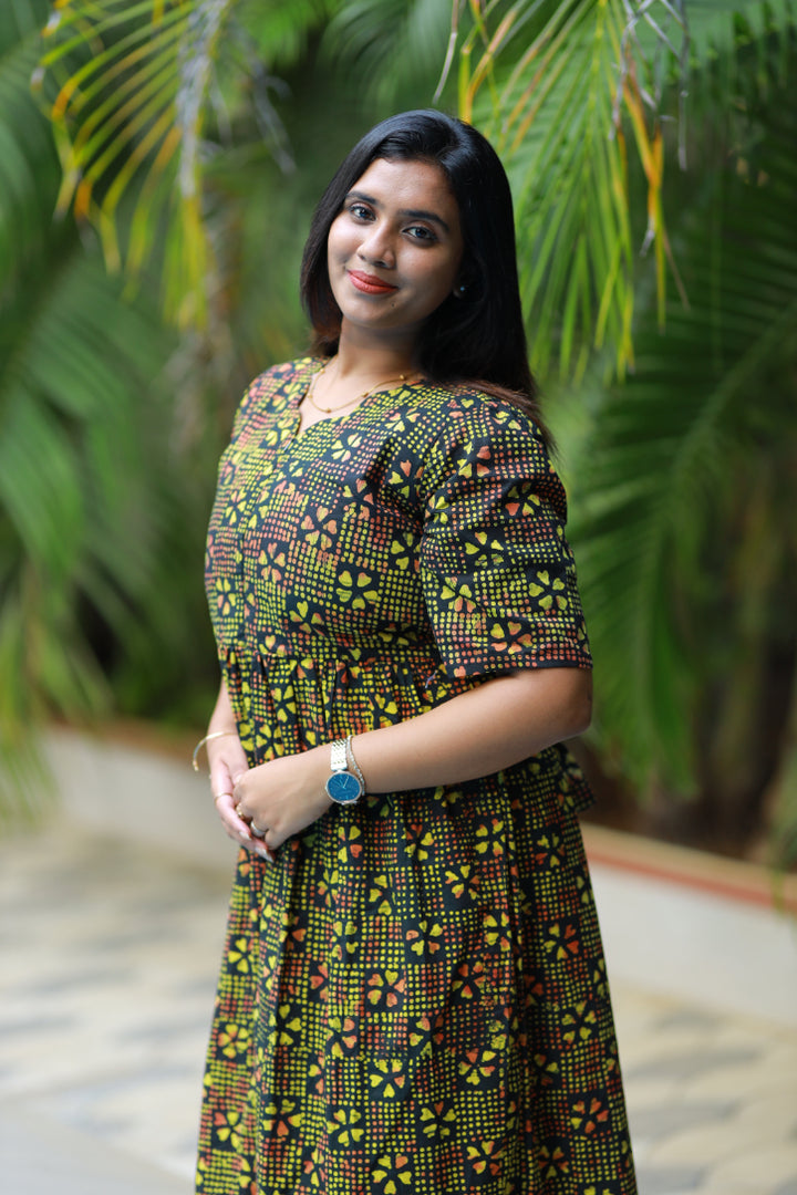 Pure cotton Hand Dyed sky Batik double layer frock with center zip