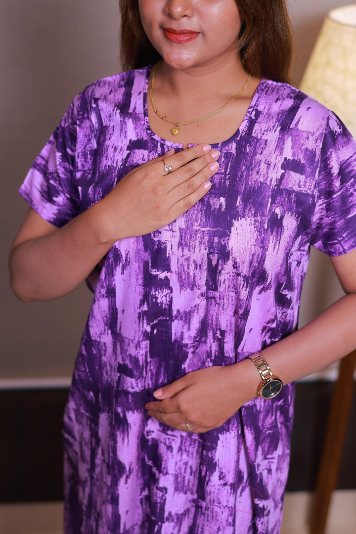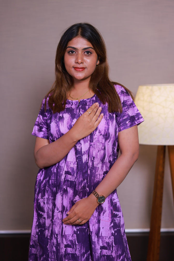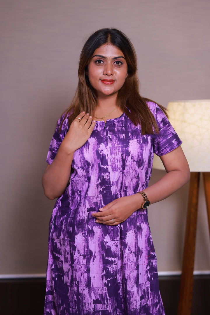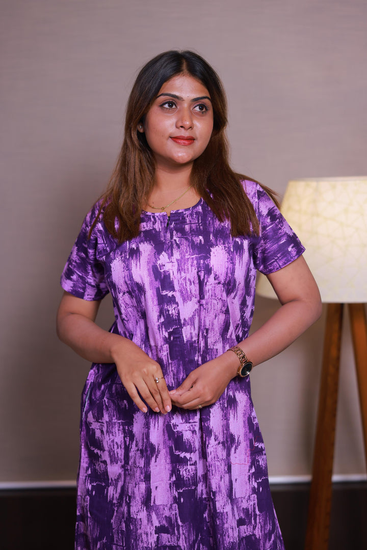 Purple With Light Purple Floral Design Invisible Center Zip Feeding Nighty