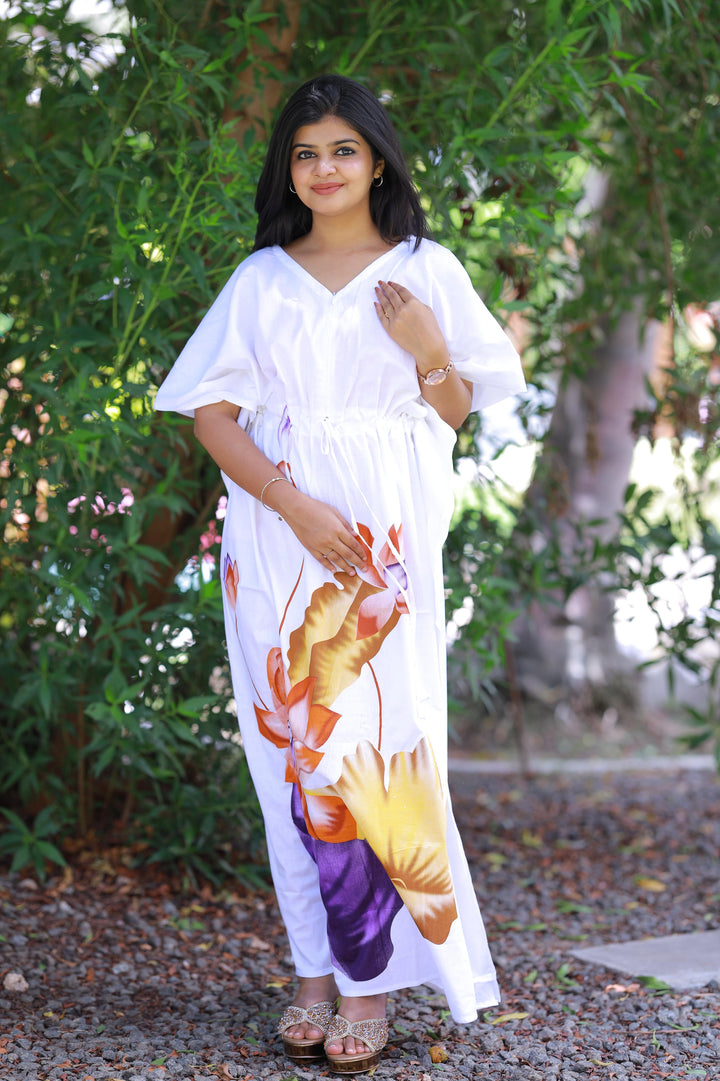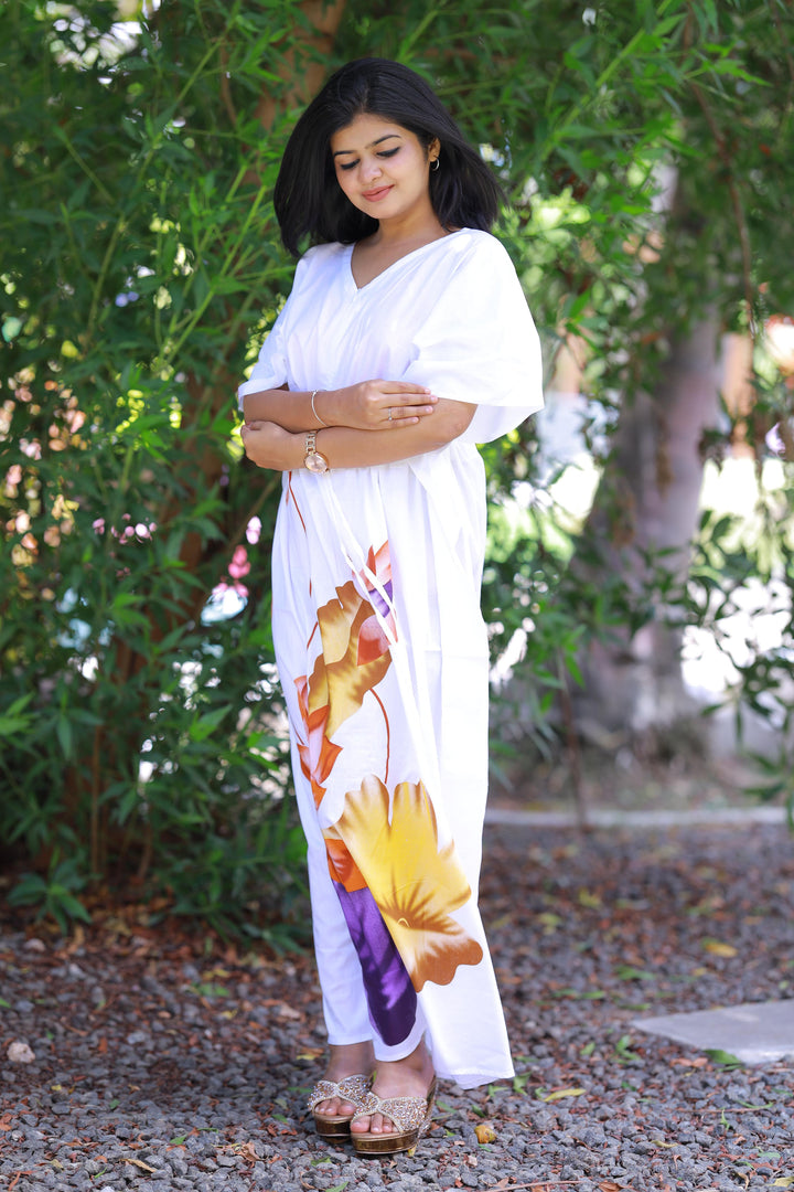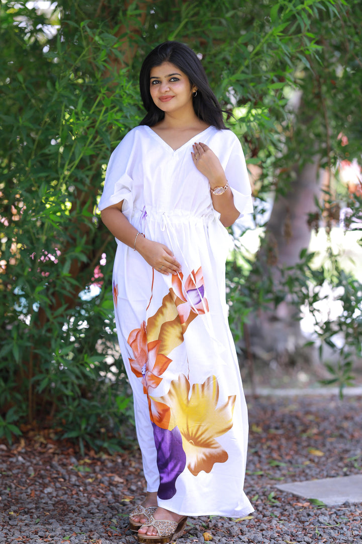- Kaftan Comes with Double Stitching , overlock and front rope