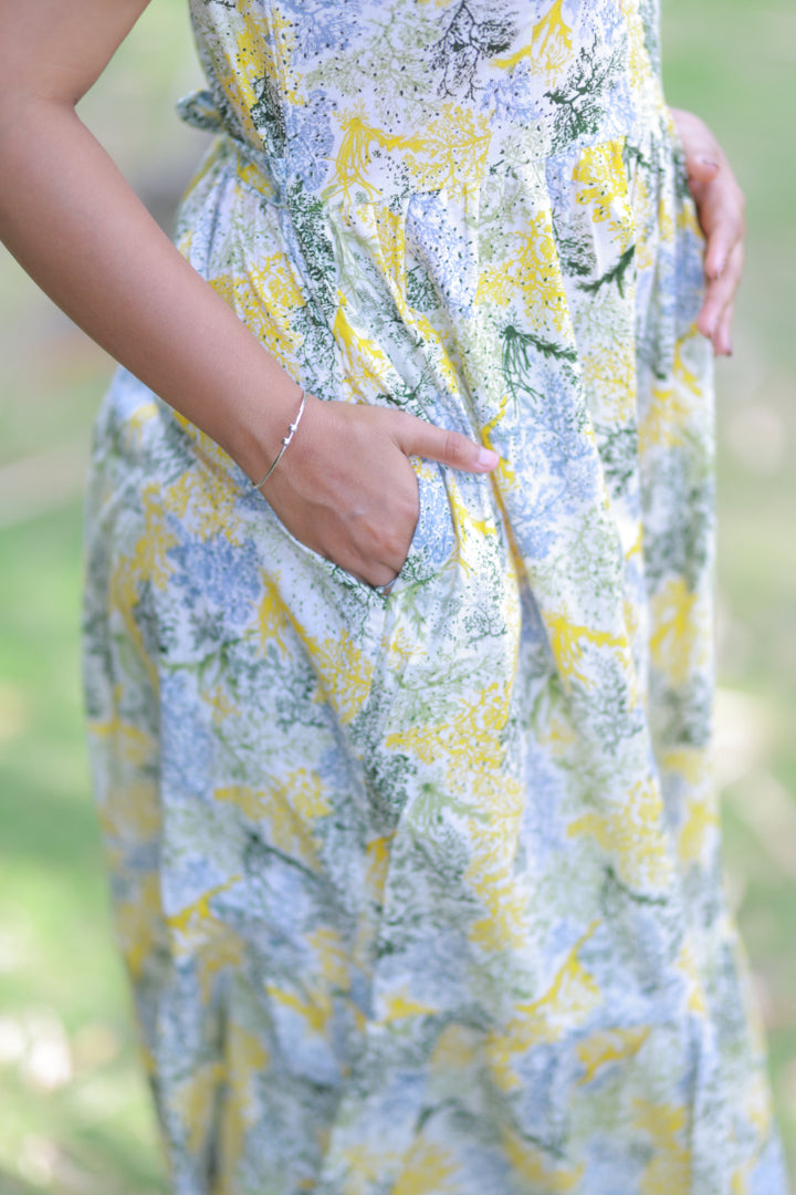 Golden Yellow with Olive Green Collar Design 2 Layer Center Zip Frock