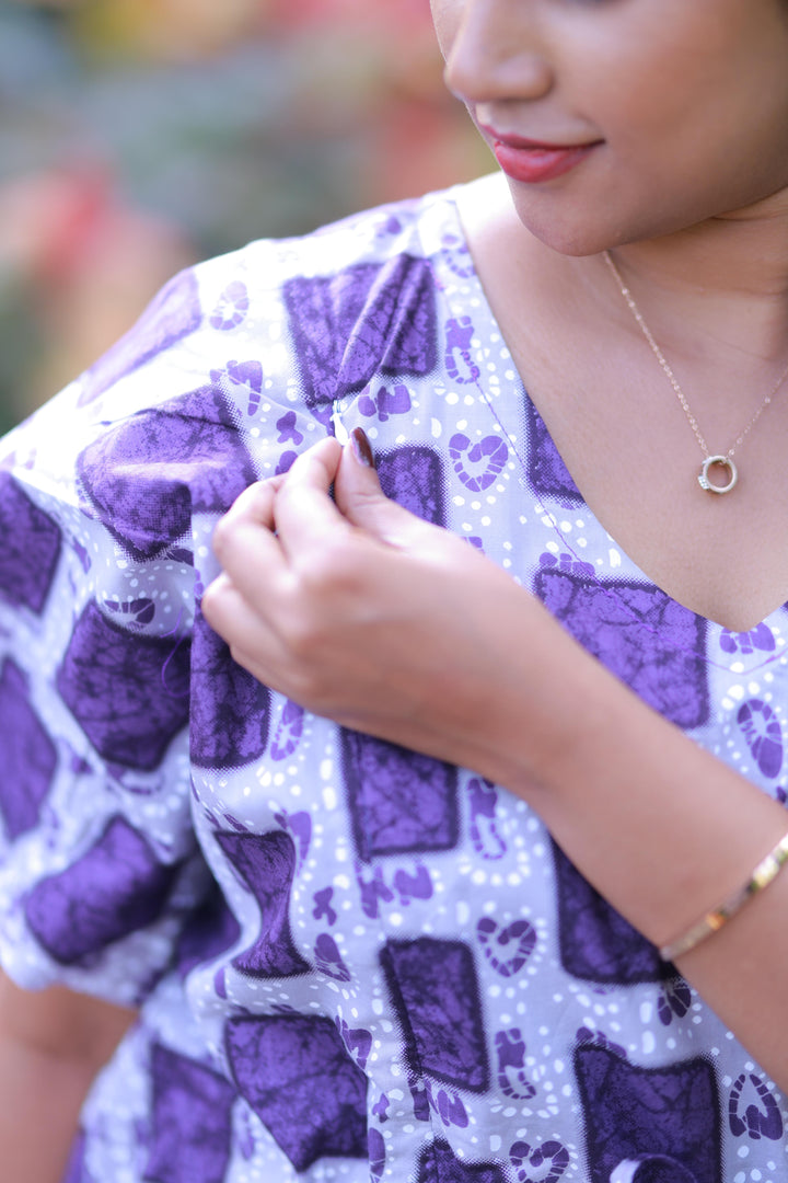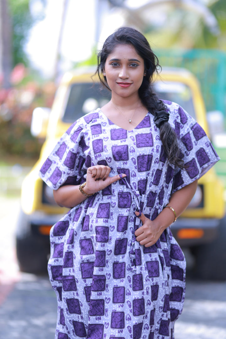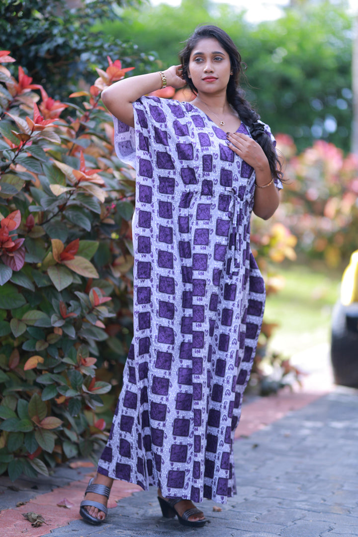 Gray With Purple Checked Design kaftan with feeding side zip