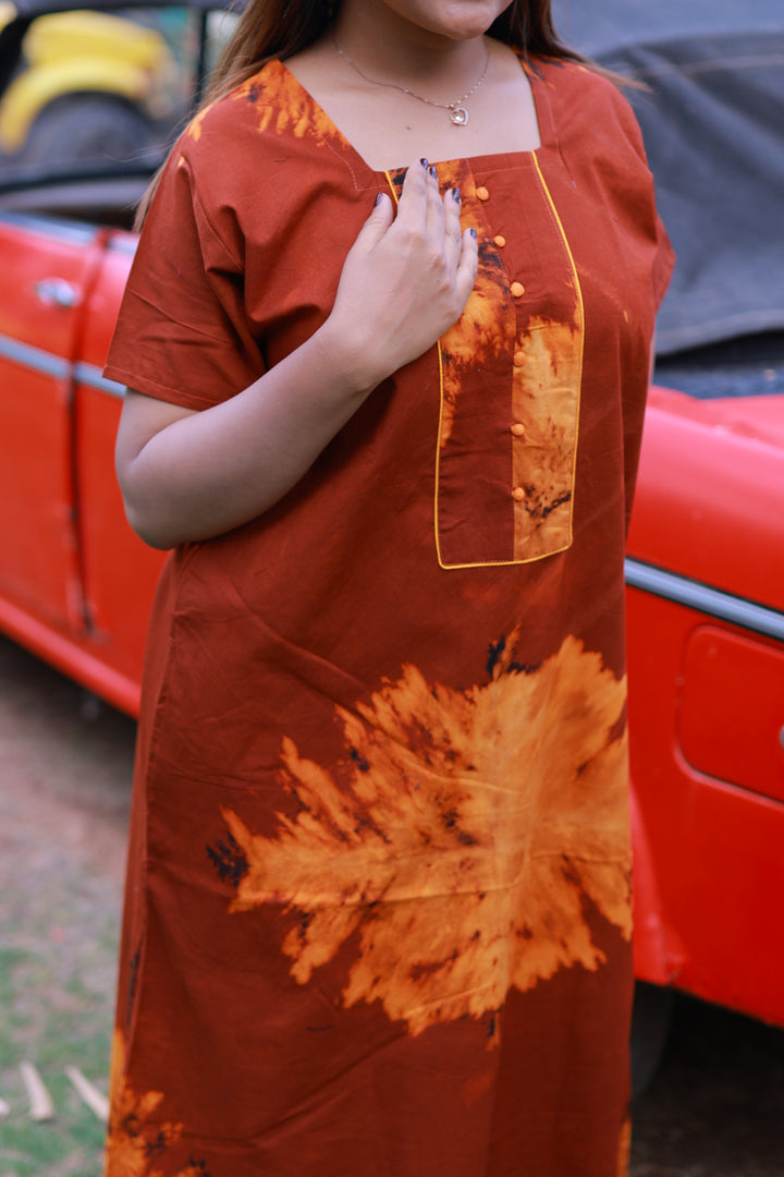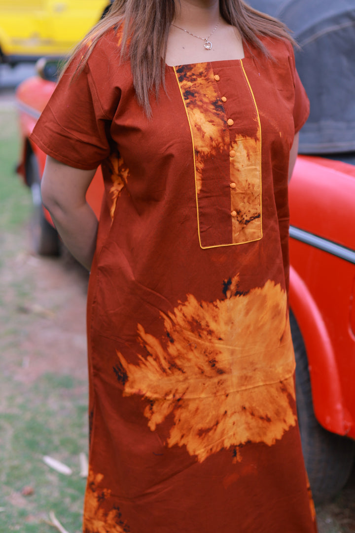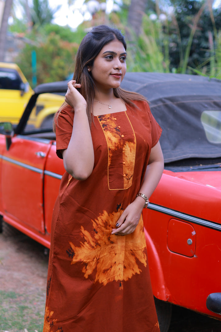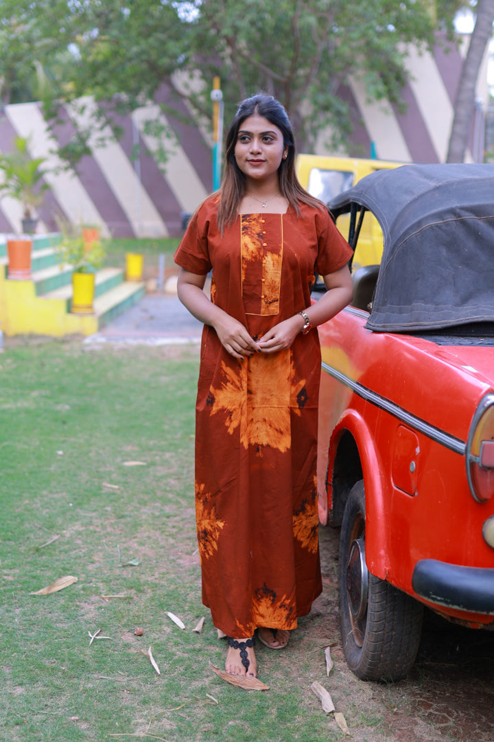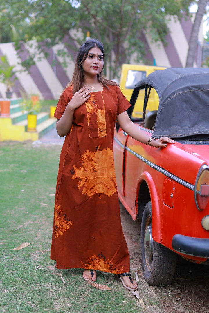 Maroon With Orange Tie and Dye Design Without Zip Nighty