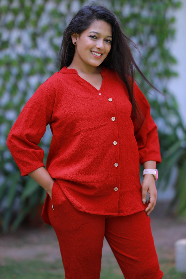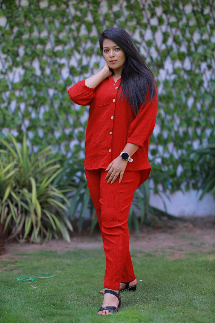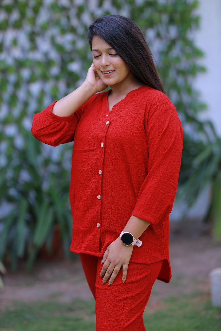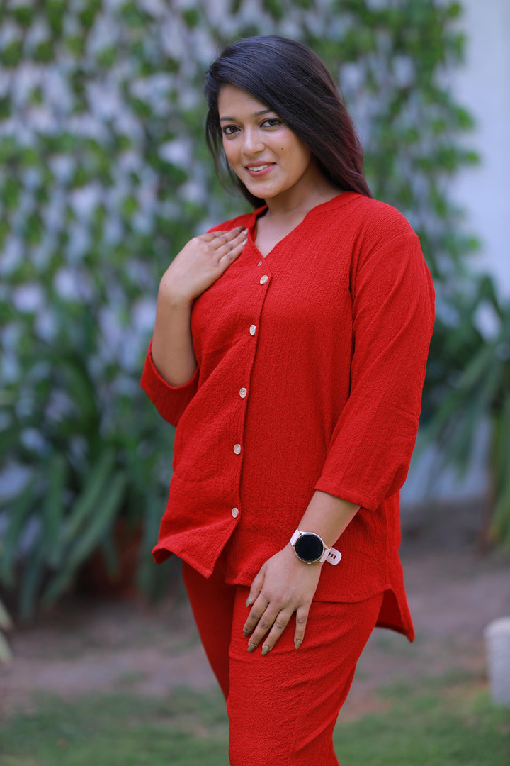Trendy popcorn Red co-ord set nightdress