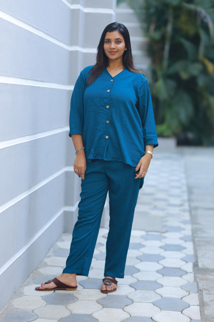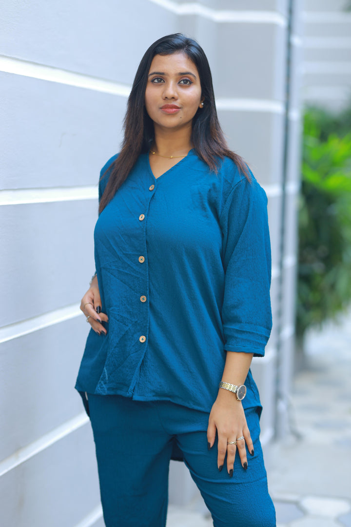 Trendy popcorn Rama Blue co-ord set nightdress