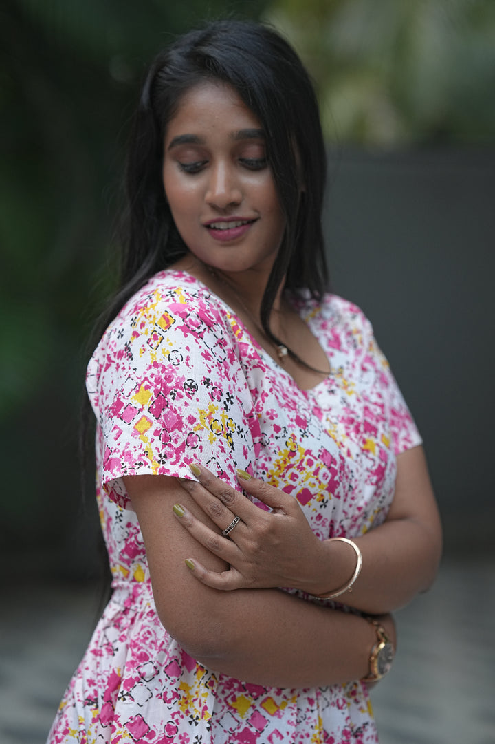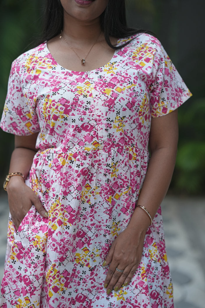 white with Pink Center Zip Frock